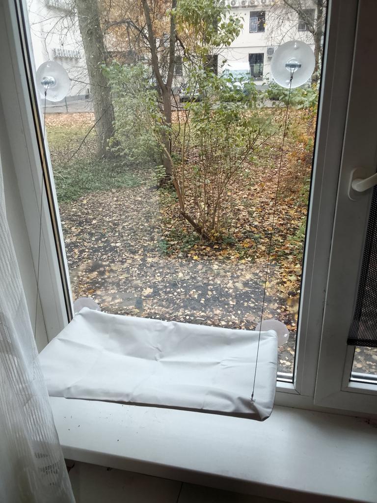 Hammock made of a regular plastic frame. The fabric is durable. The ropes are durable (some cats like to chew them - dangerous) The Velcro sticks firmly to the glass. Wide hangers, so it can be attached to two windows at once.