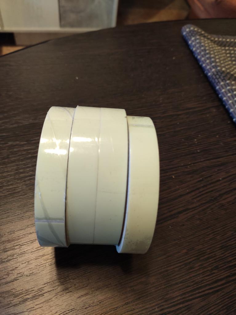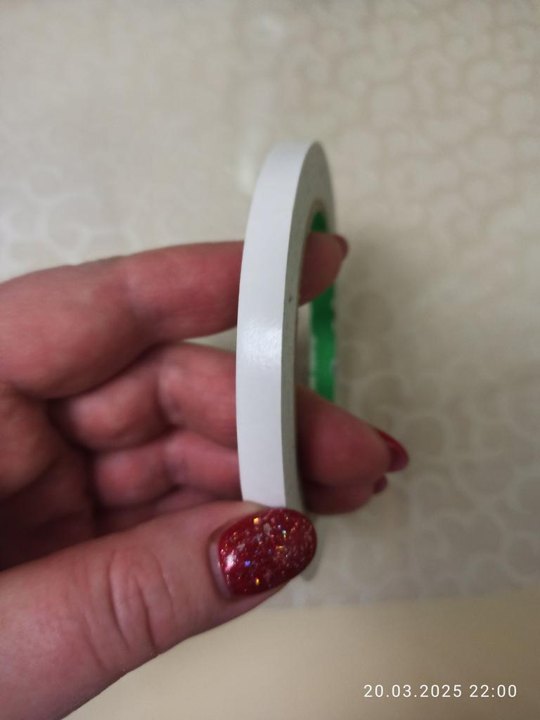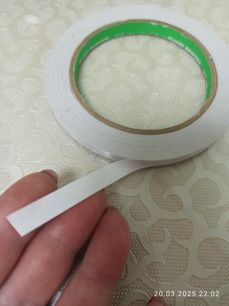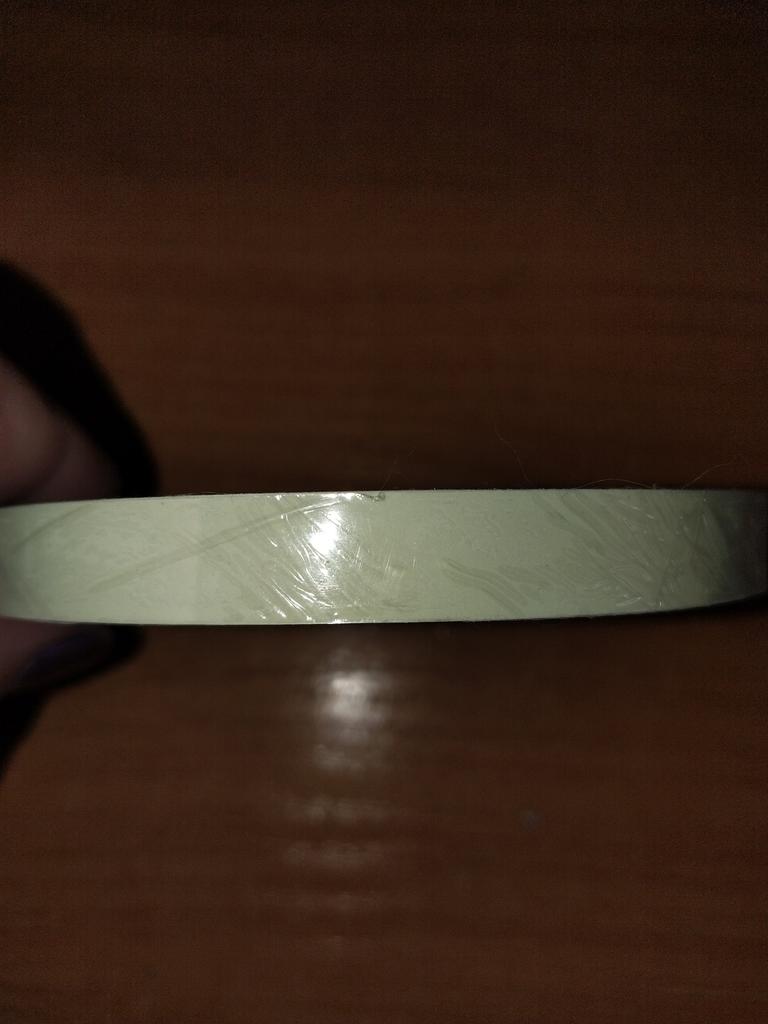 Thin double-sided tape. However, the main function - to shine in the dark, is very weak. The lower part of the tape is poorly separated. The tape wrinkles.