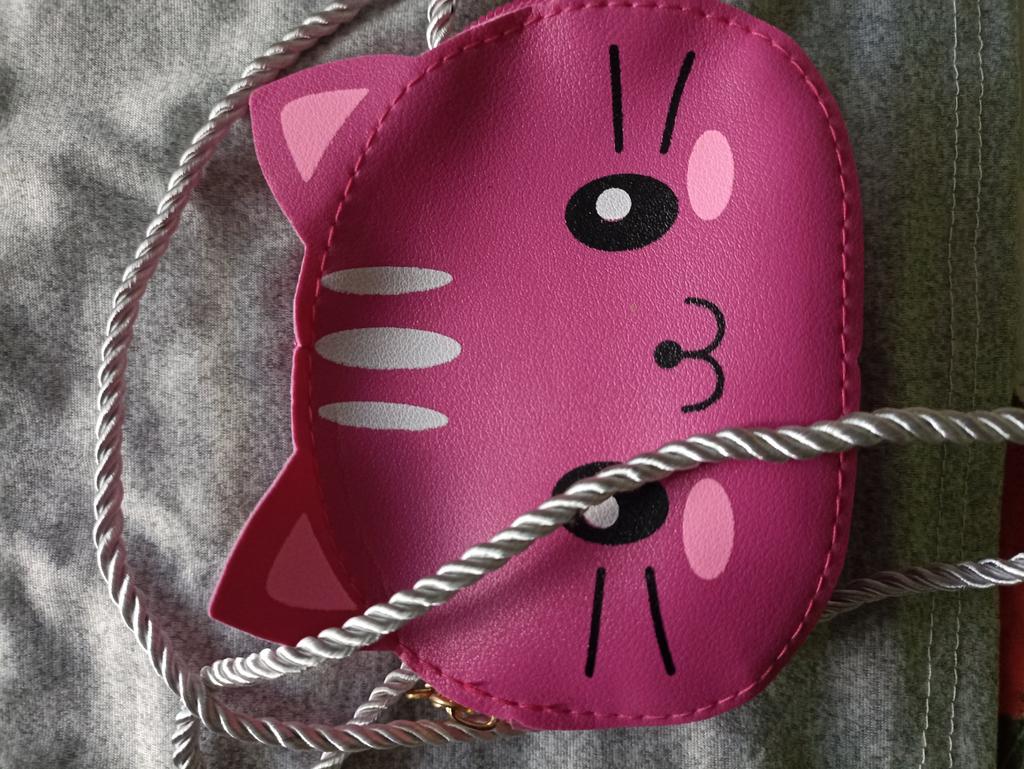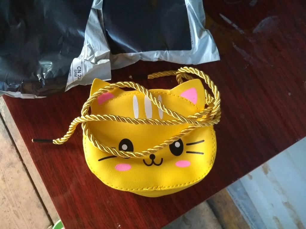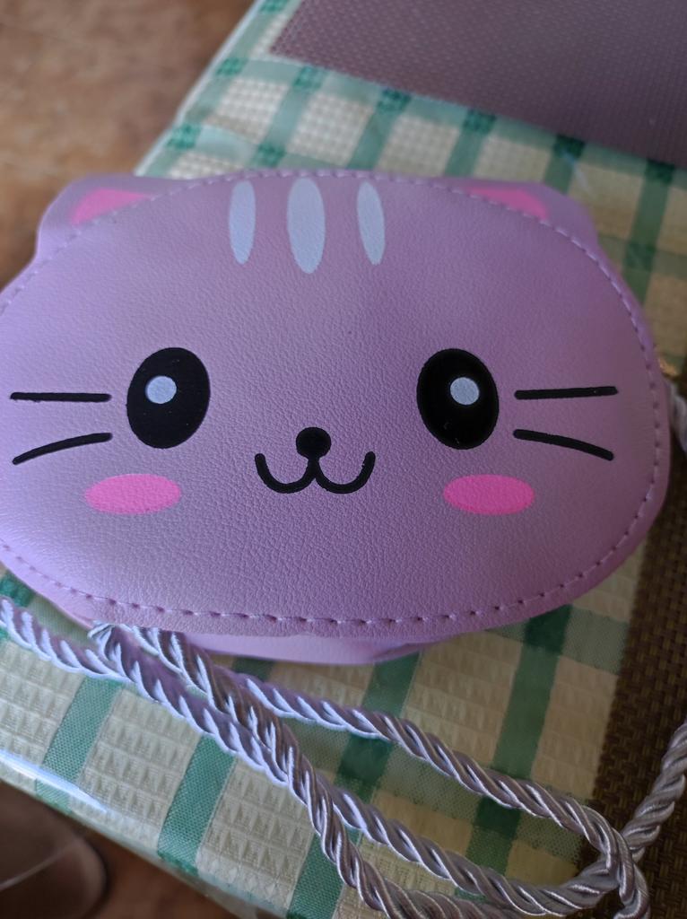 Little cute handbag. The lightning is working. The bag's strap, or rather the string, is inserted into the bag. The child is happy.