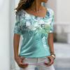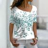 Summer Women's Floral Theme Printed Painting Pullover V Neck Flower Printed Streetwear Casual Oversized T Shirts Y2K Tops