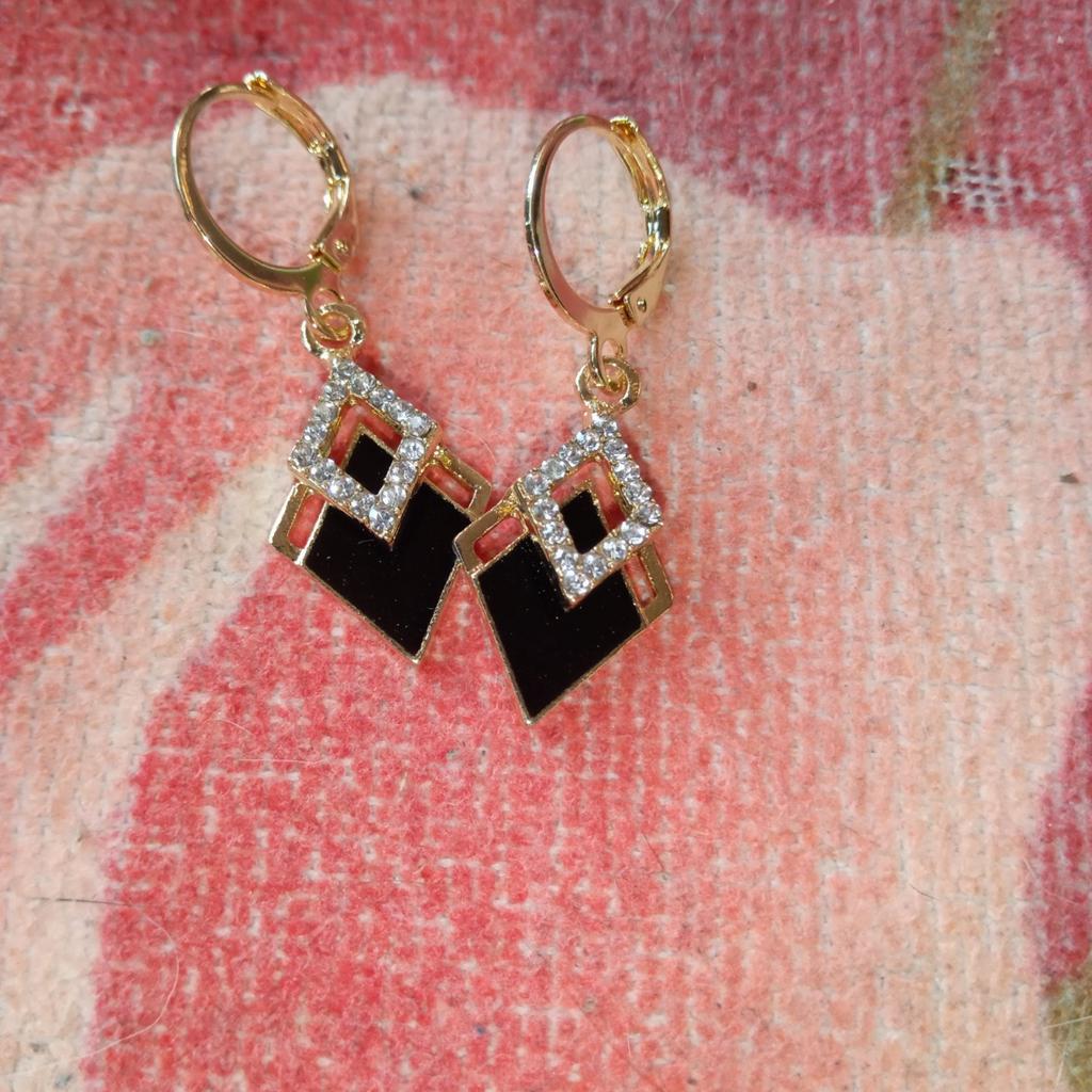 European and American Fashion Personality Delicate Black Zircon Earrings Women Geometric Design Simple Light Luxury Earrings