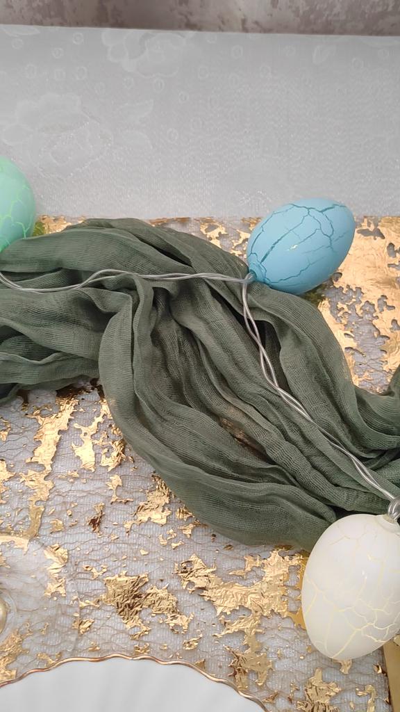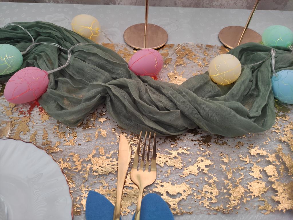 I read in the comments that many people received broken or damaged garlands. I was lucky this time: the garland arrived intact, nothing was damaged and everything works perfectly. It is one and a half meters long. If you want, hang it somewhere, put it in a transparent vase, or, like me, just lay it out on the table between the plates. It works on two AA batteries, and gives off a pleasant glow. In the dark, for me, it is too bright. In daylight, it gives off a pleasant, calm light.