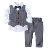 Baby Boy Gentleman Suit White Shirt with Bow Tie Striped VestTrousers 3Pcs Formal Kids Clothes Set