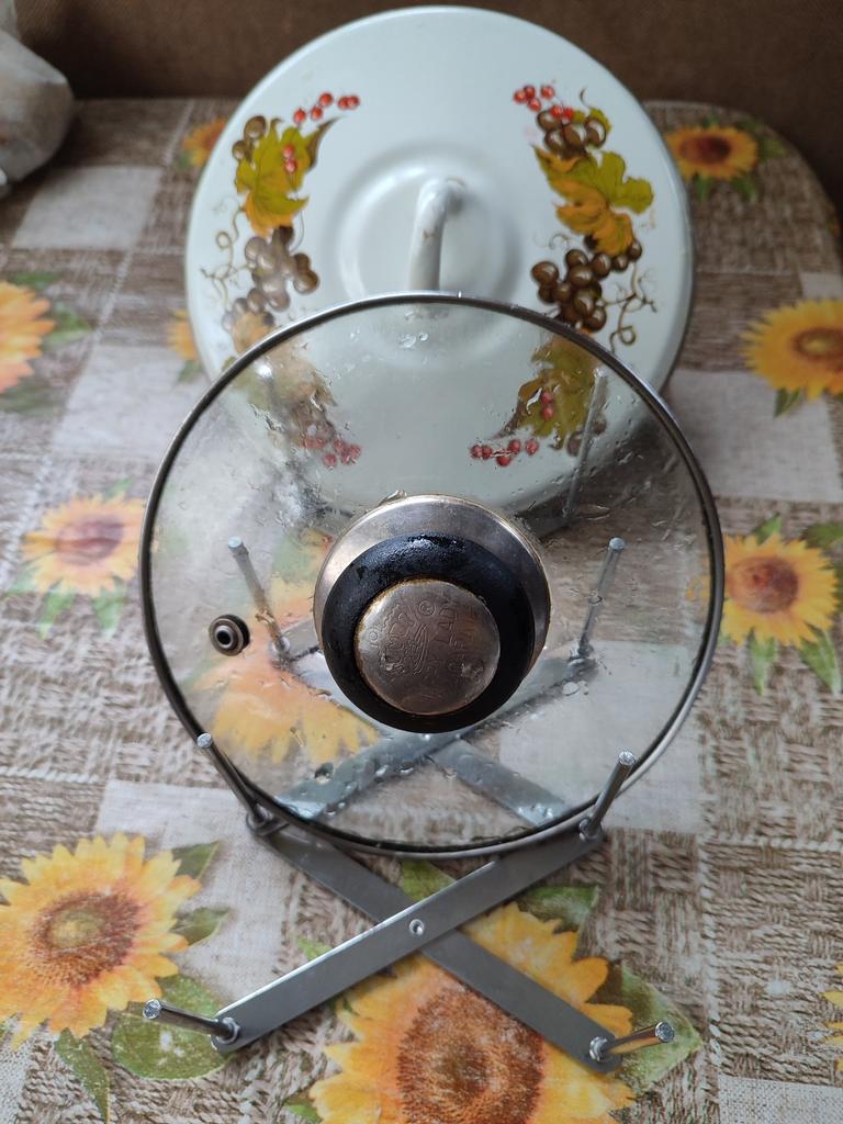 Stand made of strong metal, size smaller than expected. Tried it in use - the large lid stays almost lying down. The small ones will stand normally.