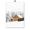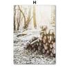 Winter Scenery Picture Canvas Painting Wall Art Elk Animal Wood Snowscape Poster and Print for Modern Home Living Room Decor