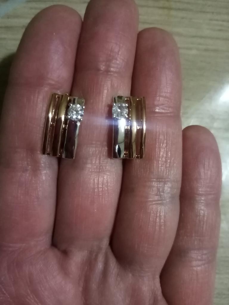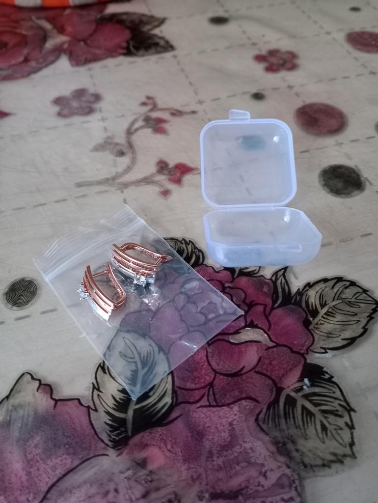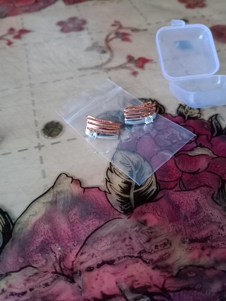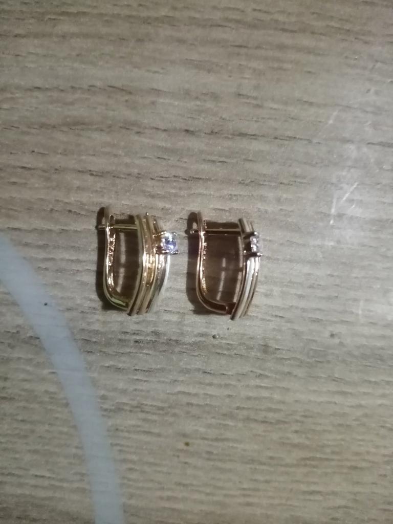 Looks very nice on the ears, unbroken design, beautiful combination of rose gold and silver. And the cherry on the cake - a tiny sparkling zircon - just lovely!