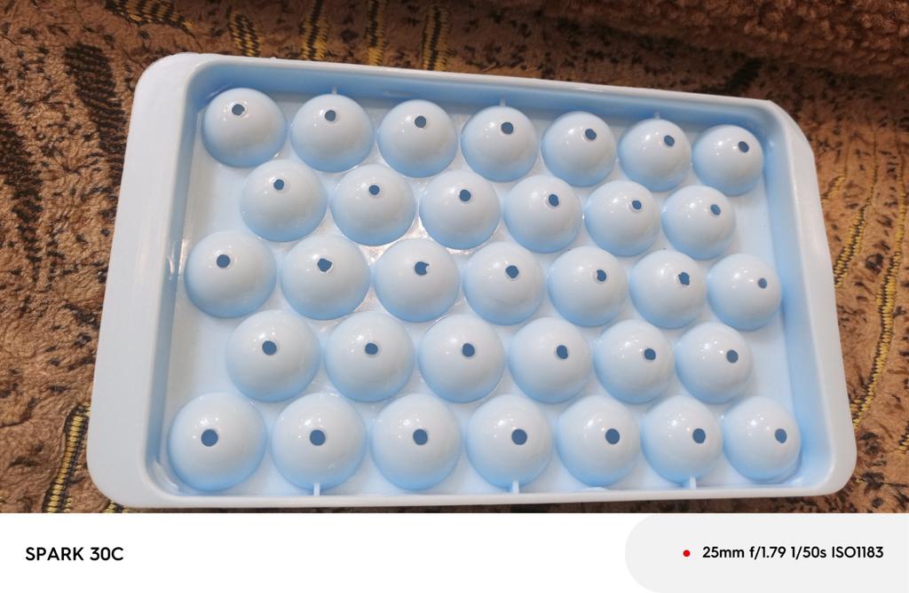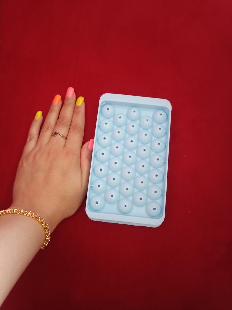 Small. The balls come out about 1 cm in diameter. Although they look cute in a glass. Now I need to learn how to pour the water so that they come out full-shaped and round. Otherwise, most of them come out as halves