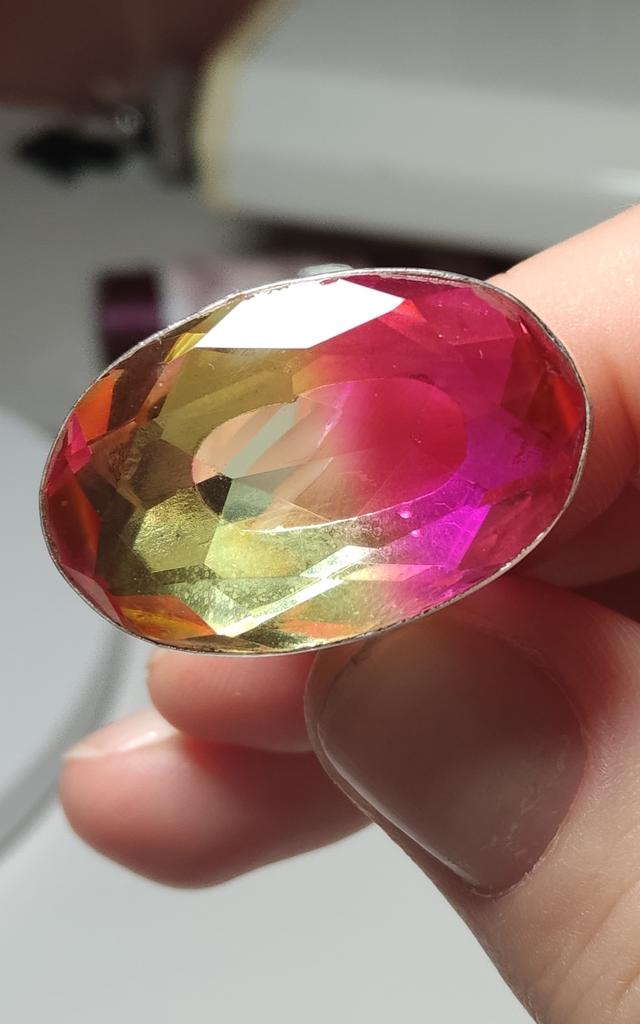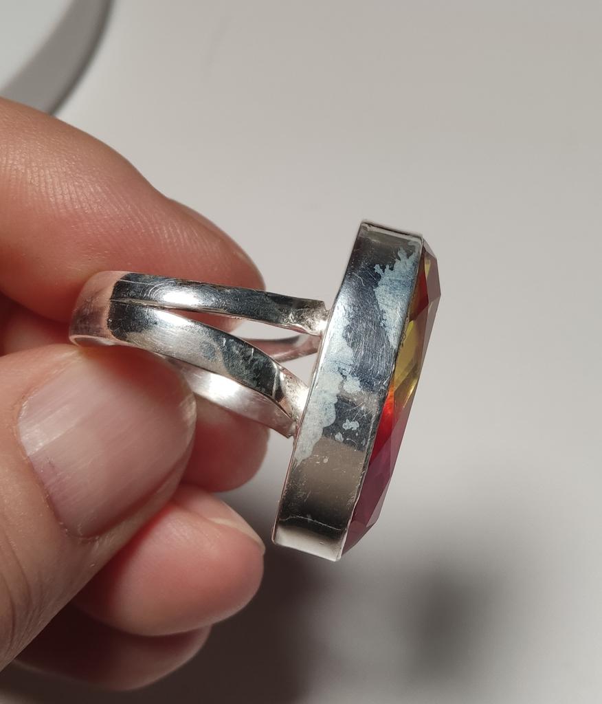 Silver ring hallmarked 925... imitation ametrine I think.... given the size of the glass stone... it is beautiful 😍... thank you very much to the seller for his fast and efficient shipment... good sunny day ... I recommend ....