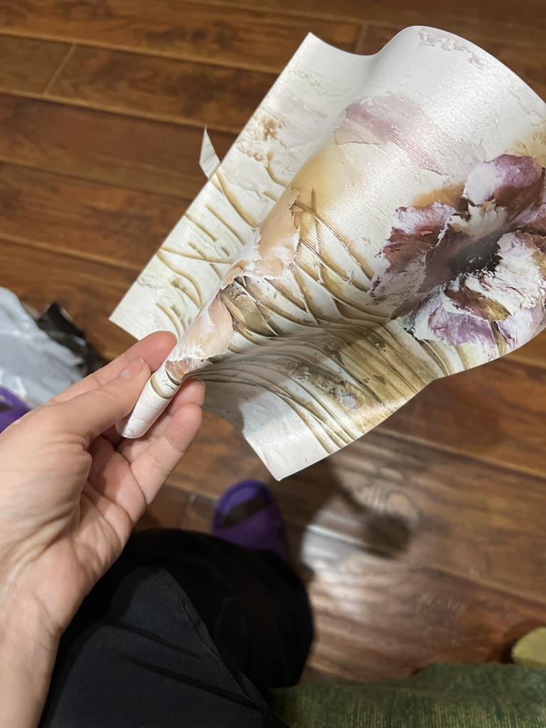 They broke the picture so it would fit in the combined package, the canvas can be safely thrown away, these creases can no longer be smoothed out.