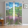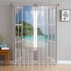 Window Views Cherry Blossoms River Sheer Curtains For Living Room Bedroom Kitchen Chiffon Tulle Curtains Home Hotel Coffee Decor