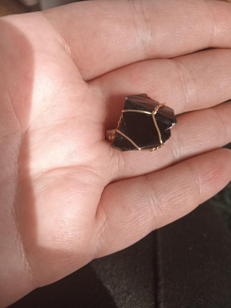 Adjustable ring, natural amethyst, rich color. Metal coating is closer to rose gold. Quite nice.
