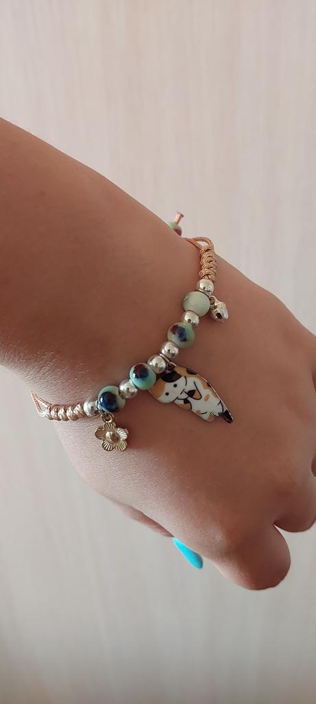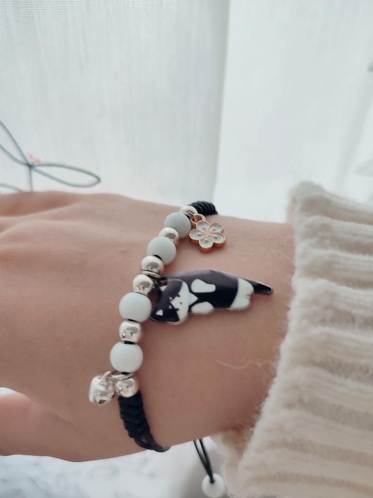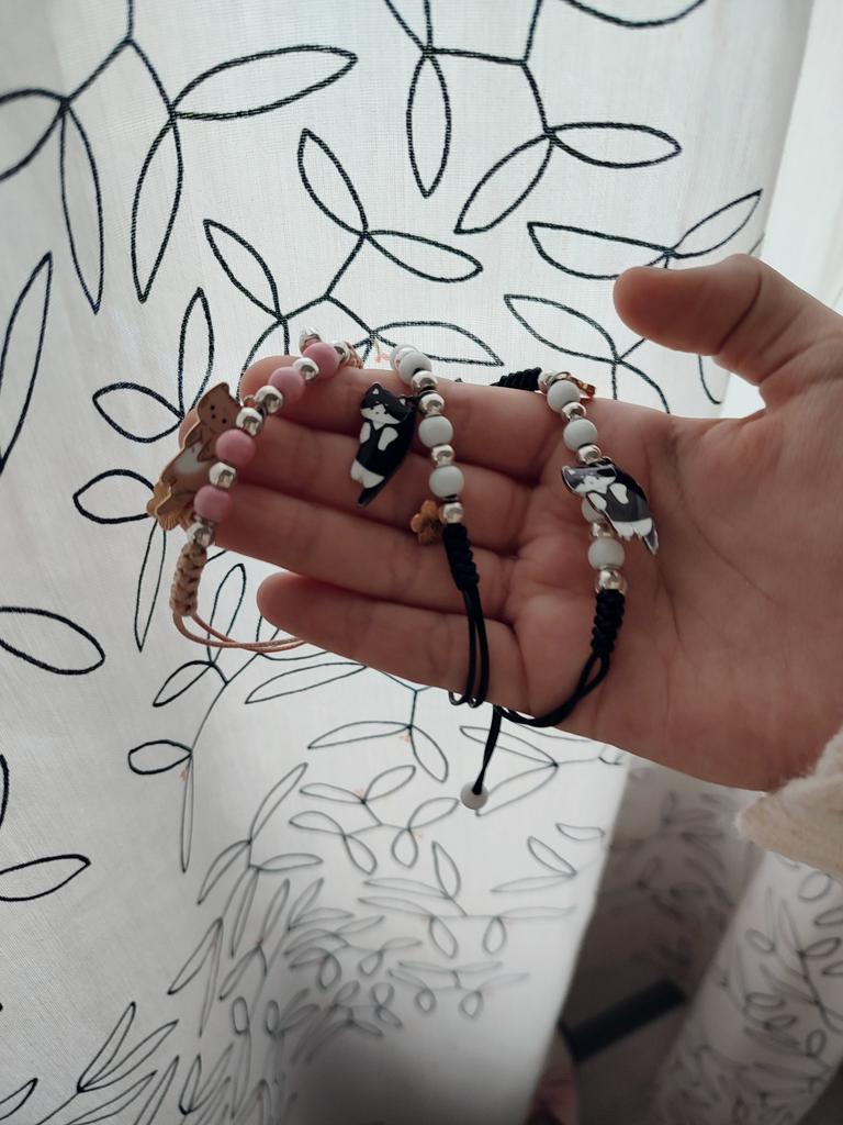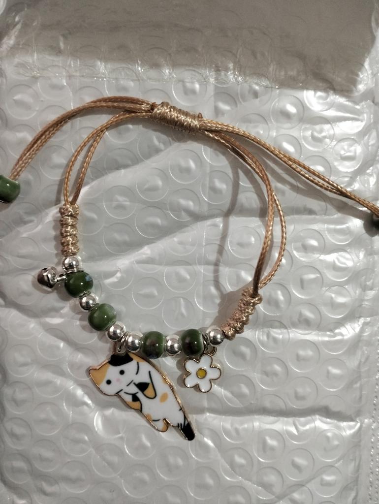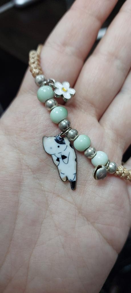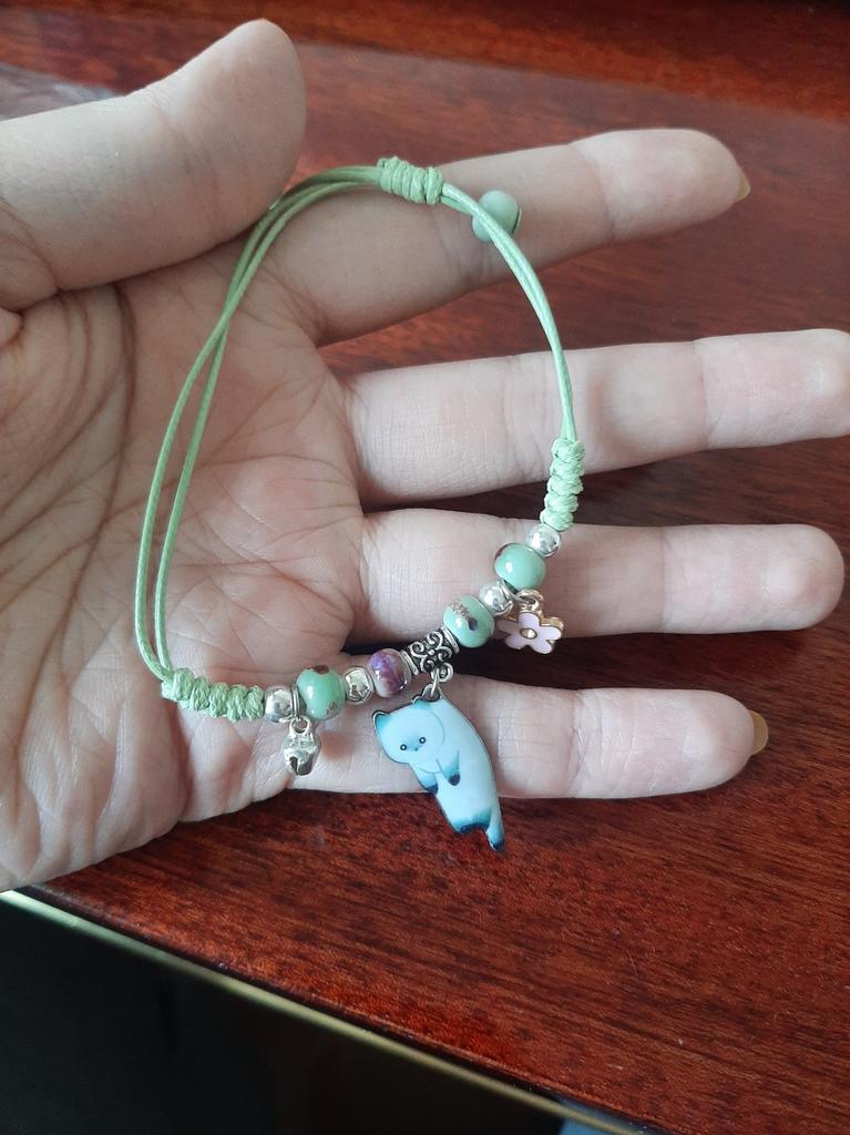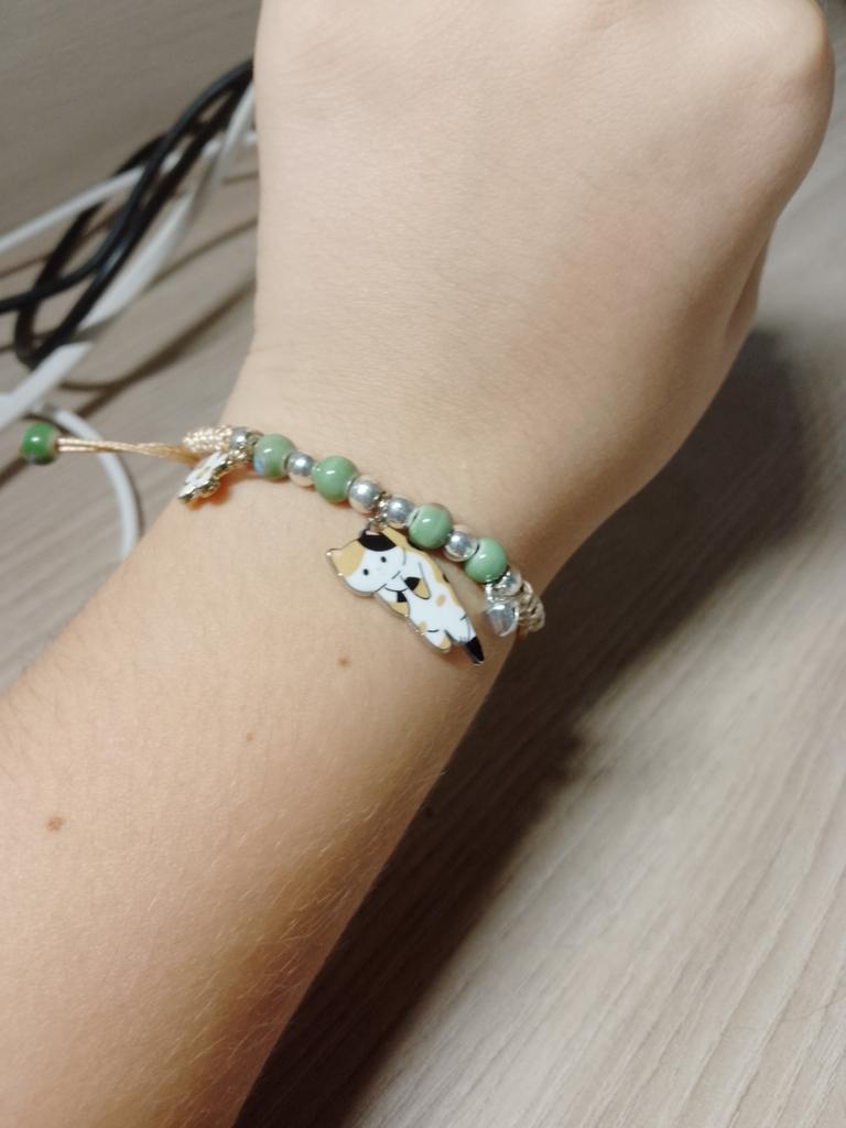 Very cute little bracelet! UPD (07.08.23): (photo Before and After long sock) After some time of use, the paint from the beads has worn off, as well as from the cat itself. A very cheap and low-quality option.