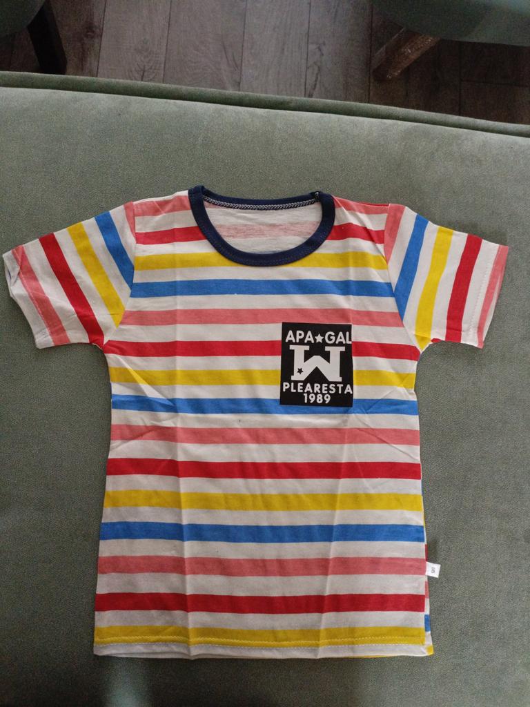 Very nice t-shirts. Pure cotton. The colors are a bit more intense than the promotional photo. Standard sizes - for 130 chest volume 74 cm, length - 52 cm. The fabric is of medium thickness, very good for hot weather.