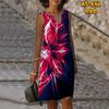 Women V Neck Summer A Flower with Green Glowing Stamens Print Dress Casual Sleeveless Fashion Casual Loose Sexy Dresses Plus Size XS-8XL