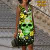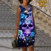 Women V Neck Summer Blue Skull Head Print Dress Casual Sleeveless Fashion Casual Loose Sexy Dresses Plus Size XS-8XL