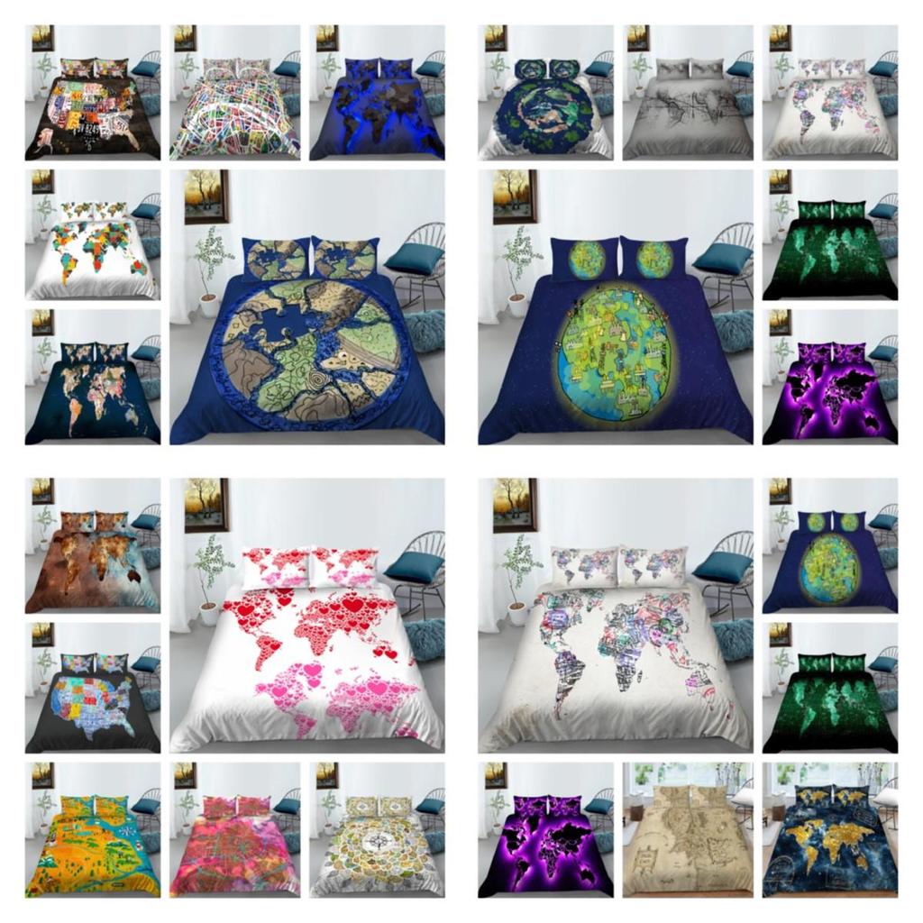 Bedding Cover Map Printing Luxury Home Bed Set King Queen Size Bedding Soft Quilt Cover Breathable Duvet Cover Set