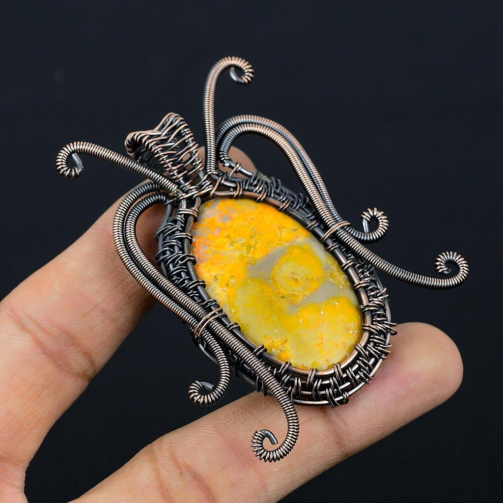Butterfly Shaped Bumblebee Jasper Gemstone Pure Copper Wire Wrapped Handmade Pendant Jewelry Gift For Her
