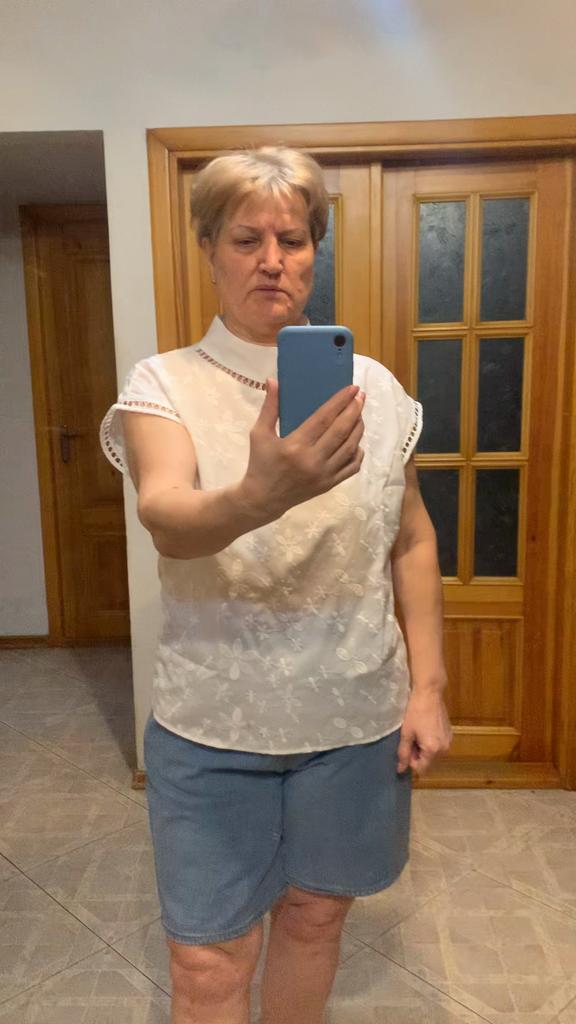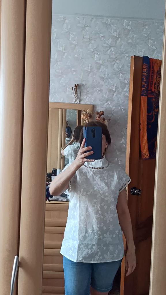 The blouse is charming, but for me it was not suitable not only for size, but also for my age. Very fresh. I don't like white.