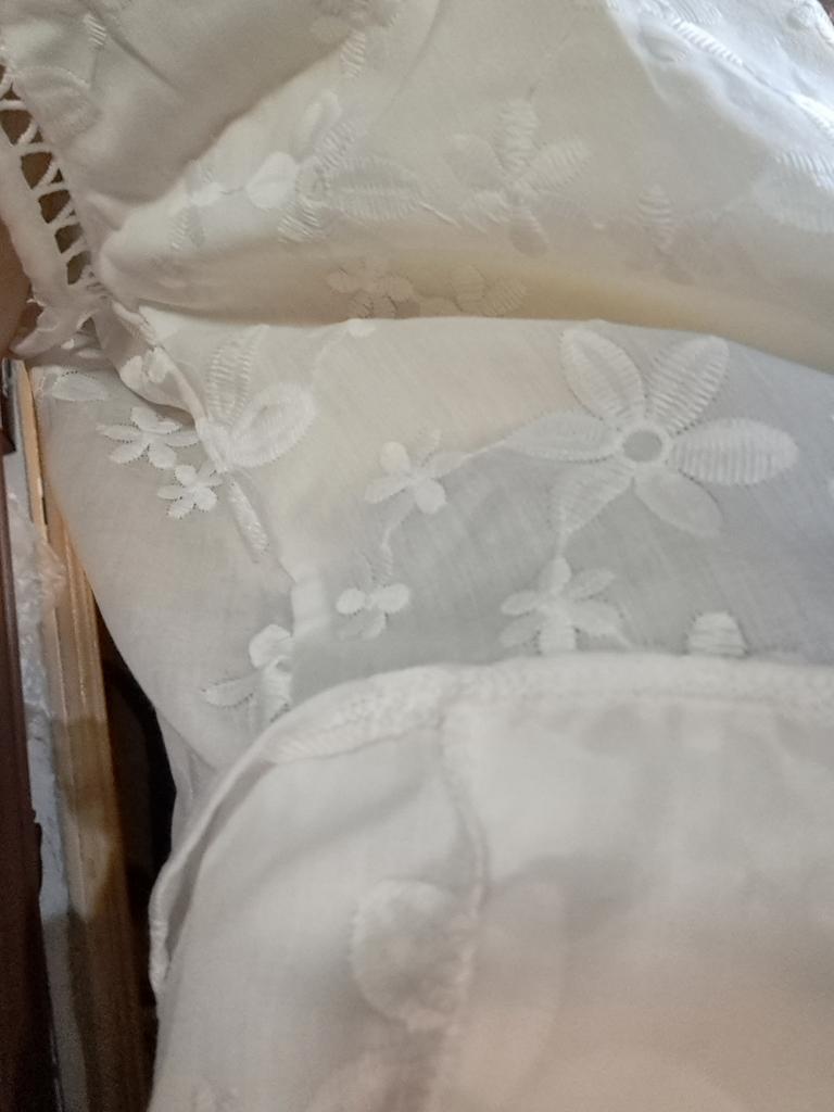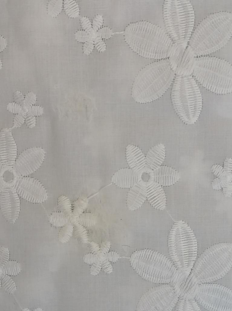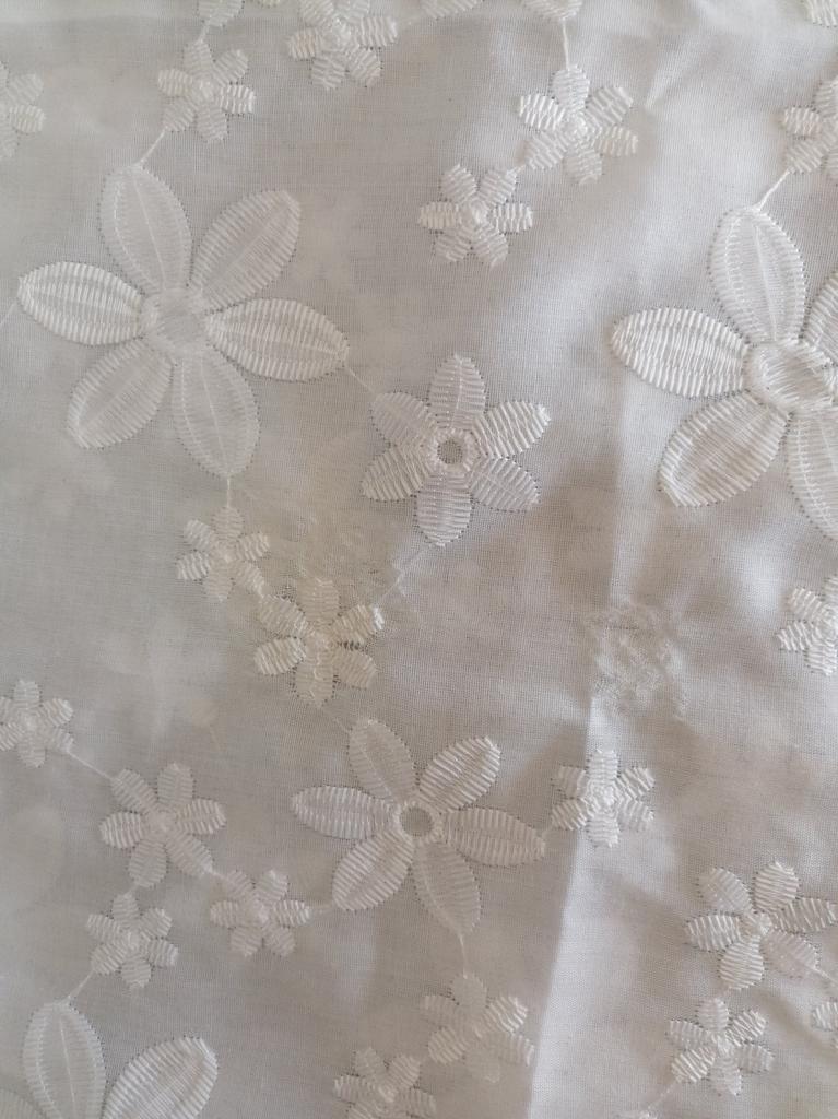 Very nice. Machine embroidered fabric. Not lace. Beautiful hemstitch motif carved on the edges of the sleeves and neck.