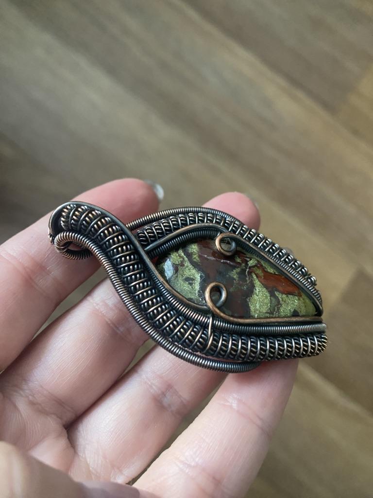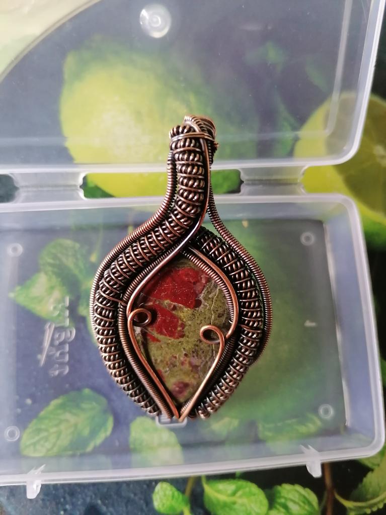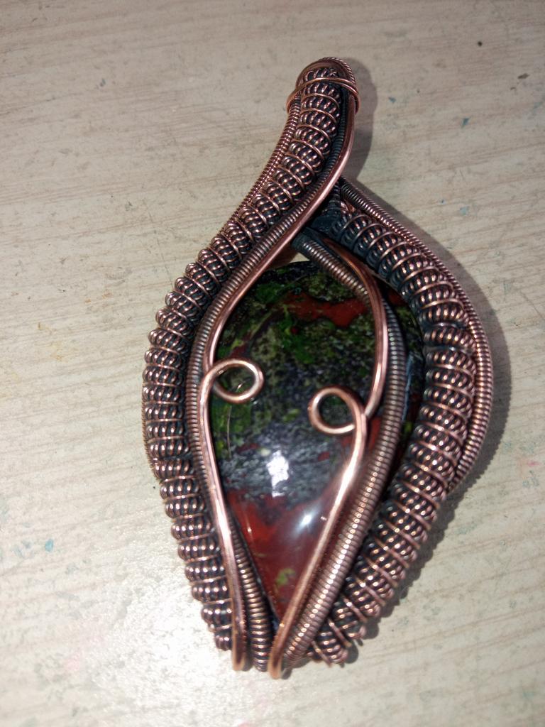 Dragon Blood Jasper Gemstone Pure Copper Wire Wrapped Designer Handmade Pendant Jewelry For Her