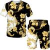 Vintege Baroque Style 3D Print Men's Tracksuit Fashion Golden Pattern T-Shirts/Shorts/Sets Hip Hop Male Streetwear Clothing Suit