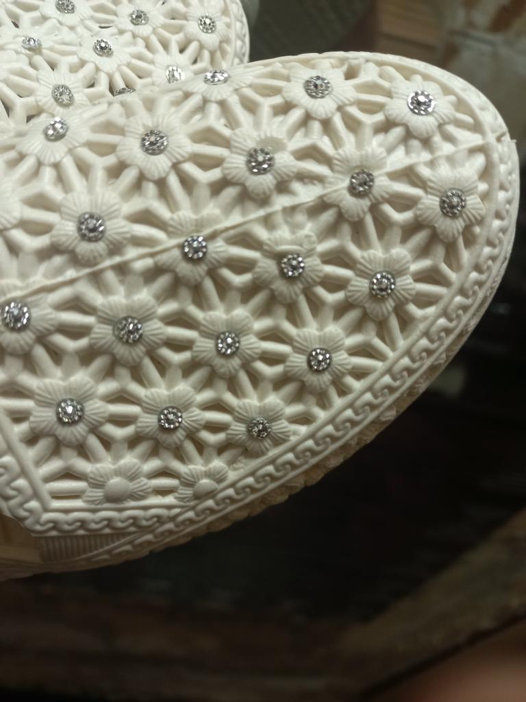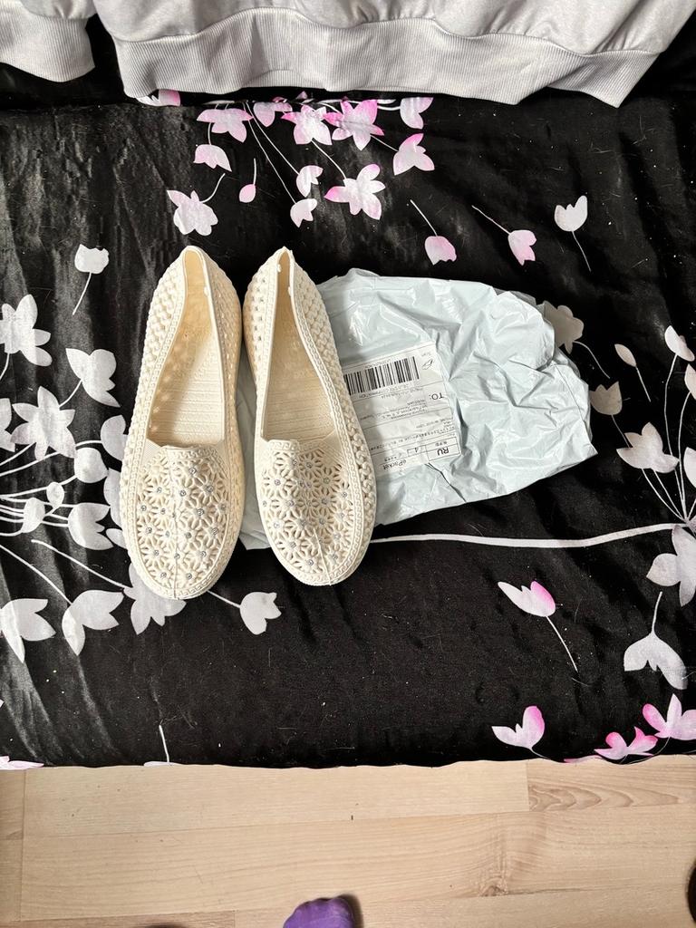 They are too small and squeeze my feet and what's more, they are plastic and I wanted them in white