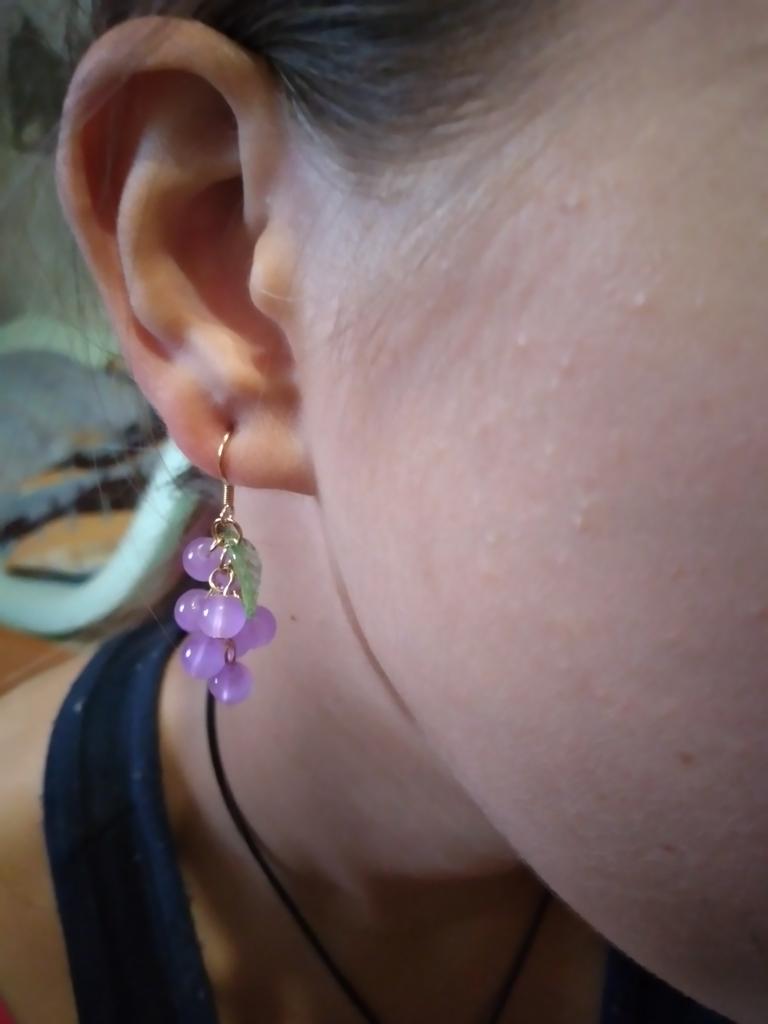 Ladies Summer Lovely Purple Grape Earrings Sweet and Cute Without Piercing Ear Clips
