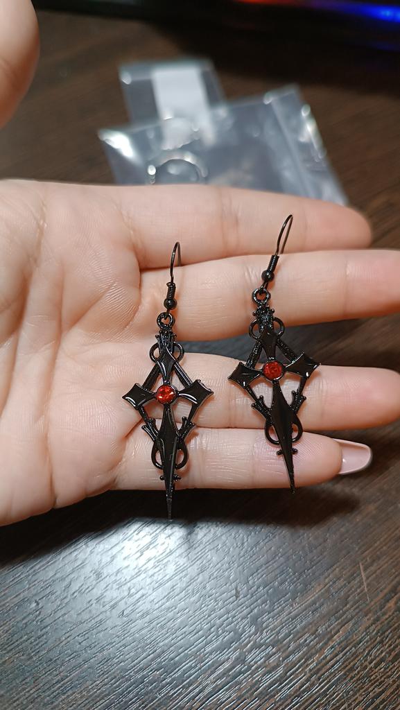 Gothic Punk Earrings Steampunk Black Cross Metal Red Rhinestone Ear Pendant for Women Girl