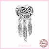 New 925 Sterling Silver Dream Catcher Dangle Charm Heart Shaped Bead For Original Pendant Bracelet Dreamcatcher Jewelry