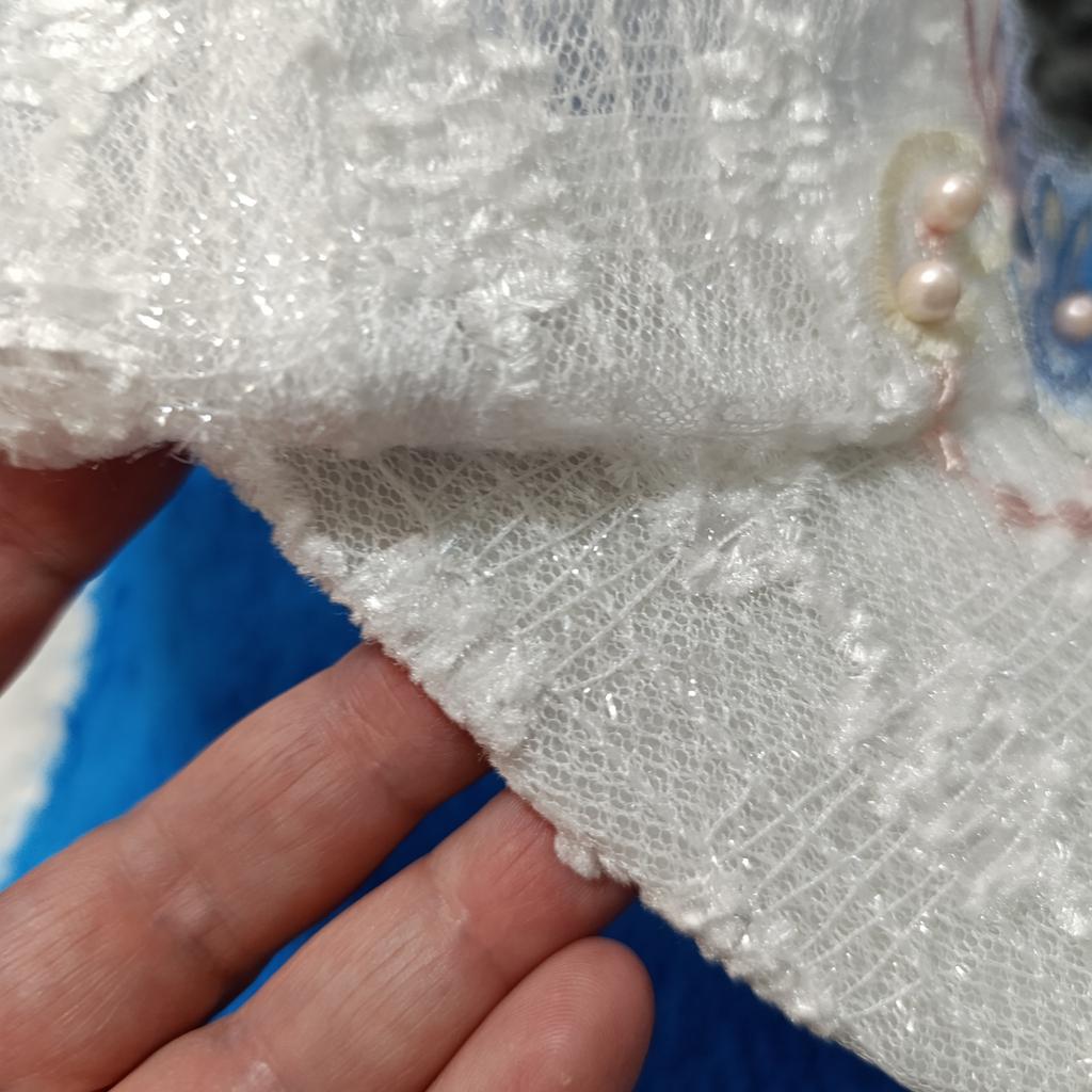 The lace hat and New Year flowers were crumpled, but were restored.