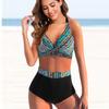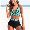 2023 New Women's Two Piece Bikini Sexy Striped Painted Swimsuit Gradient Print Bikini Suit Women Summer Fashion Loose Swimwear
