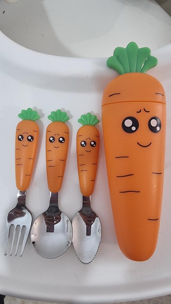 Cute Cartoon Carrot Baby Fork Spoon Gadgets Stainless Steel Toddler Feeding Dinnerware Cutlery Children Utensil Tableware