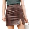 Summer Ladies Crocodile Pattern Pu Short Skirt European Size Split Skirt Slim Fit Stretch Leather Skirt