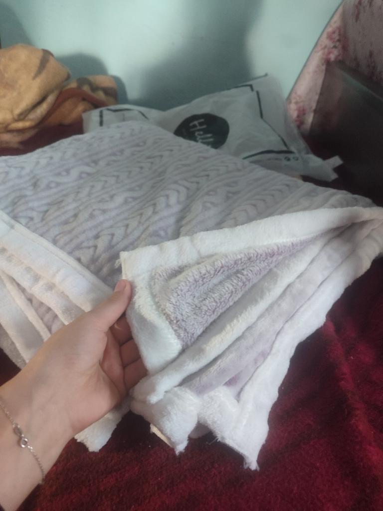 Very soft and delicate blanket. Made carefully, no extra threads stick out anywhere. Thick enough for winter use.