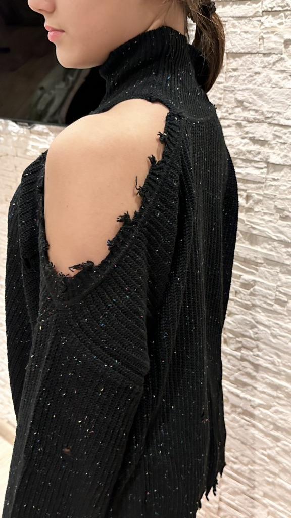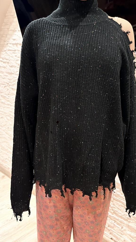 Autumn and Winter Women's Sweater Loose Strapless Hole Long Sleeve High Neck Knit Sweater
