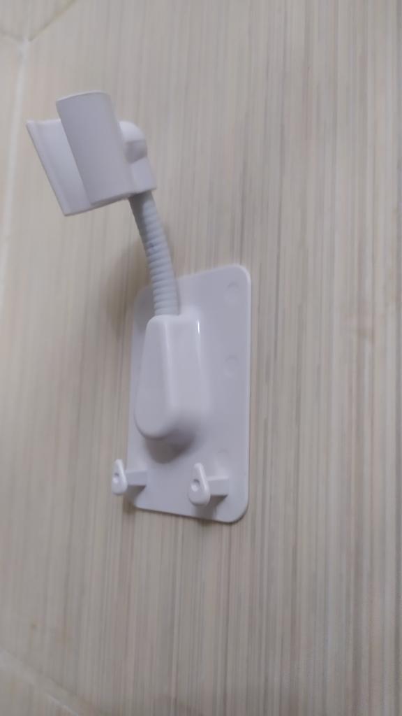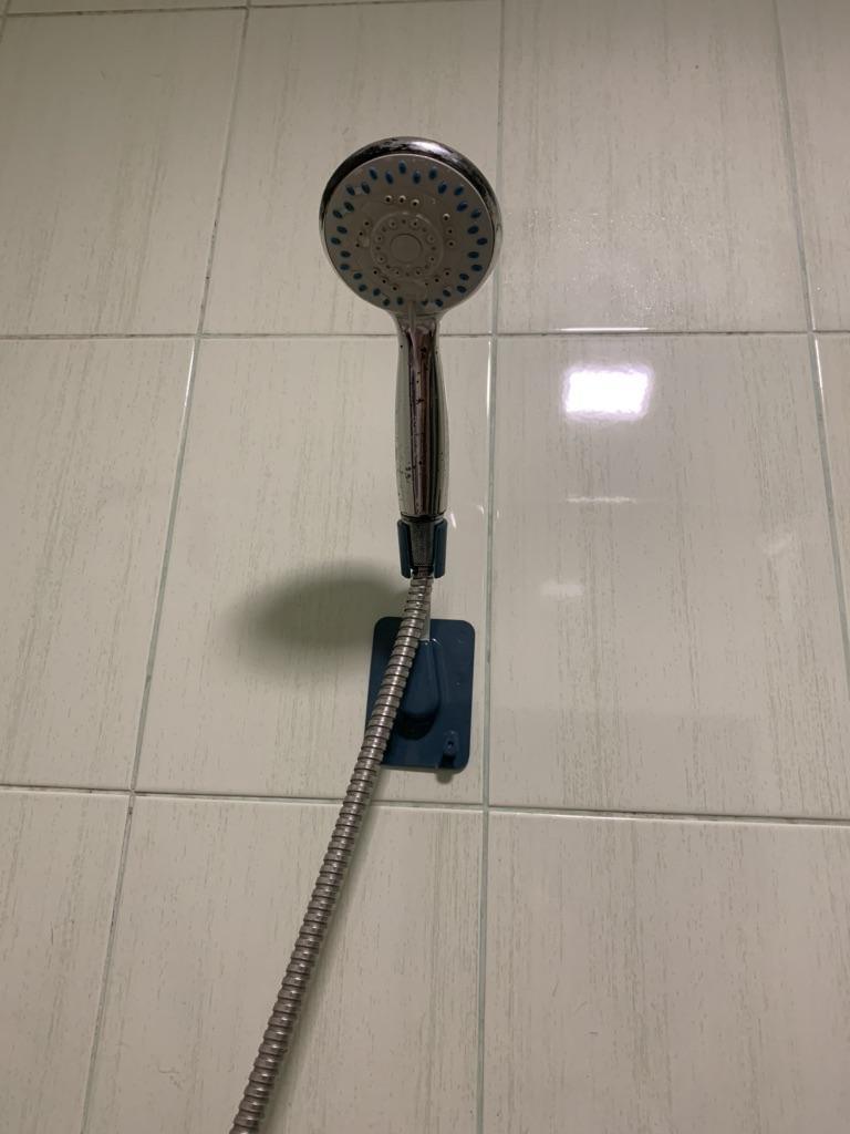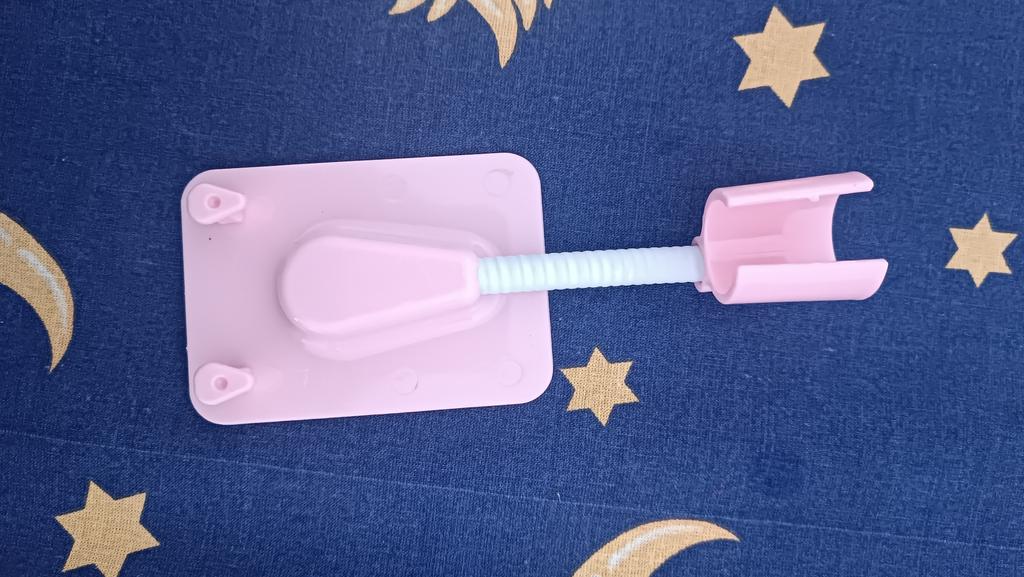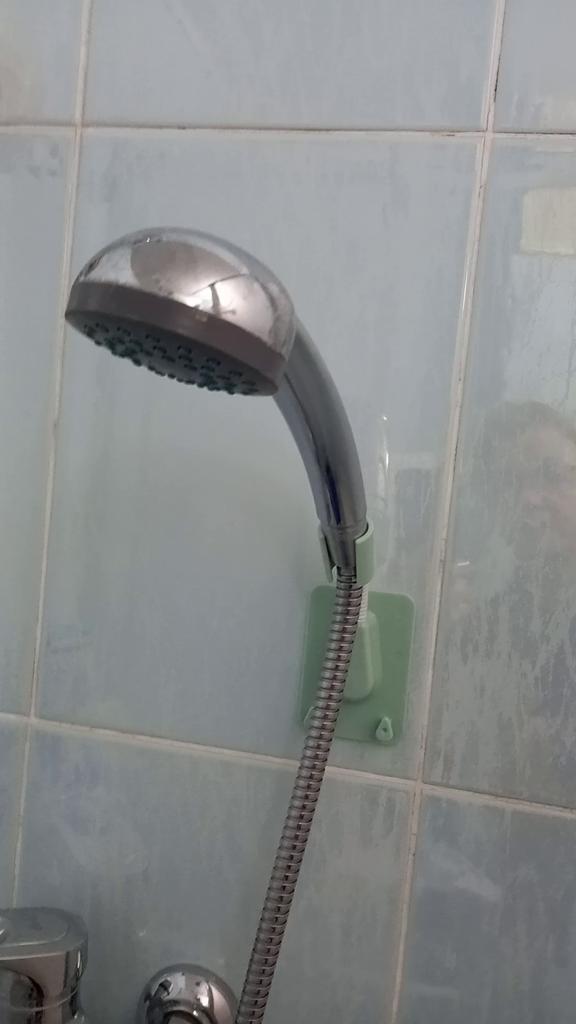 It stuck to the tiles easily, holds the shower, and is easy to adjust.