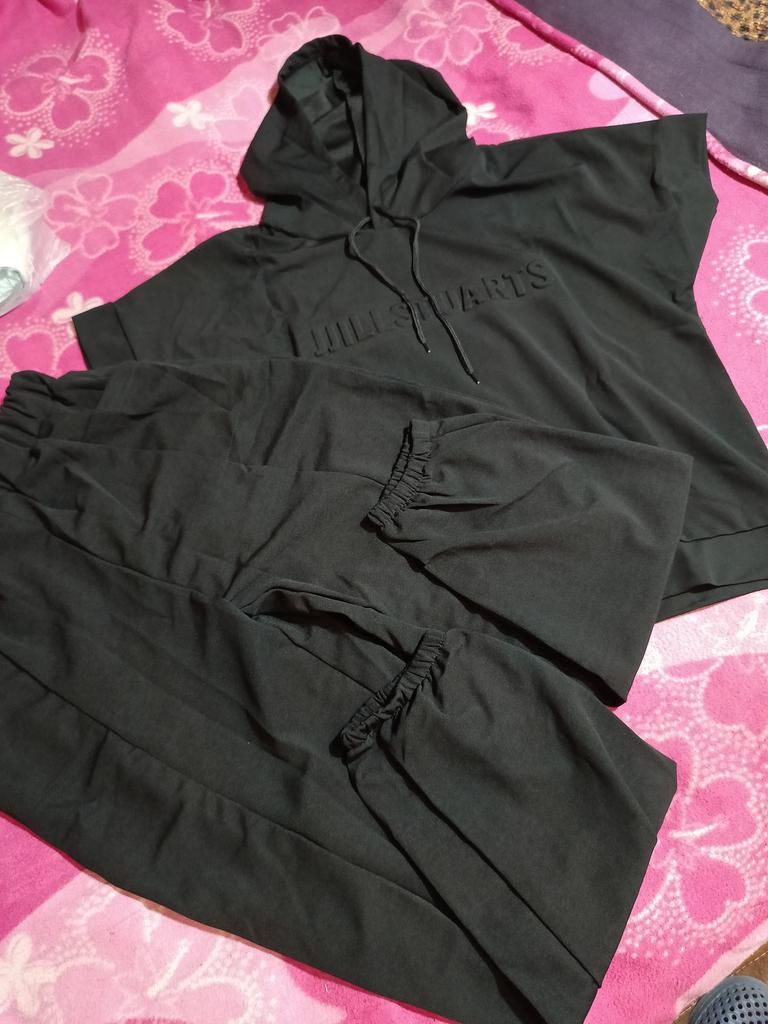 The pants are very short. The material does not allow air to pass through. It does not look like the photo. Drawstring on the hood with pulled threads.