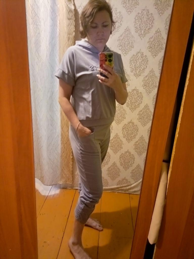 The suit is true to size. The seams on the trousers in front are a bit crooked, but otherwise, everything is fine. Corresponds to the description.