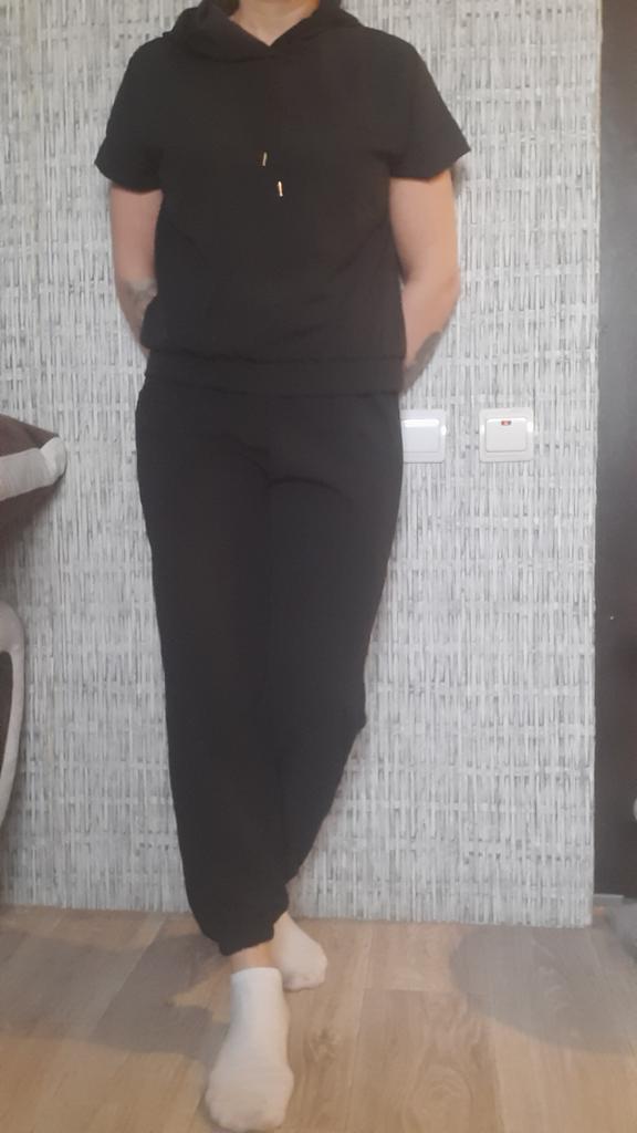 I took 2xl for xl. The suit fit. The suit fabric is nice for the trousers. The bottom of the trousers is elasticated. The length is above the ankle.. The cuffs on the sleeves are somehow not well thought out, they stick out. The hood is a bit small and the drawstring sticks out of an unfinished hole.