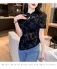 Summer Short Sleeve Mesh Lace Shirts And Blouses 2023 Fashion Stand Vintage Black Sexy Tops Lady See Through Shirts Blusas 26608
