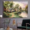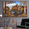 New Abstract Oil Painting Canvas Prints Mountain Landscape Posters and Prints Wall Decor Lamplight Nature House Cottage