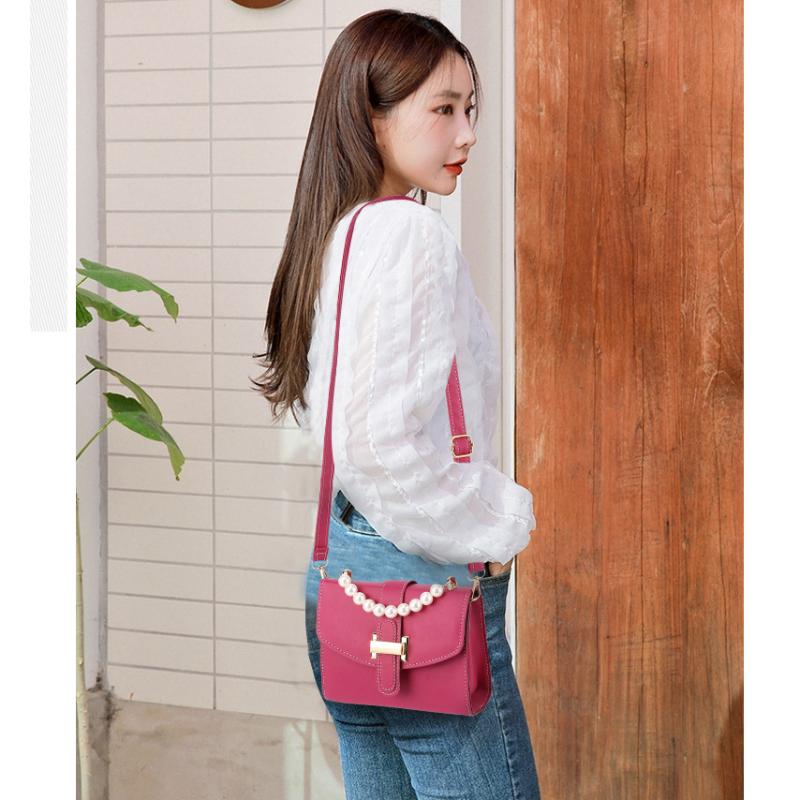 Women's Bag Versatile One Shoulder Crossbody Bag Pearl Handheld Simple Small Square Bag