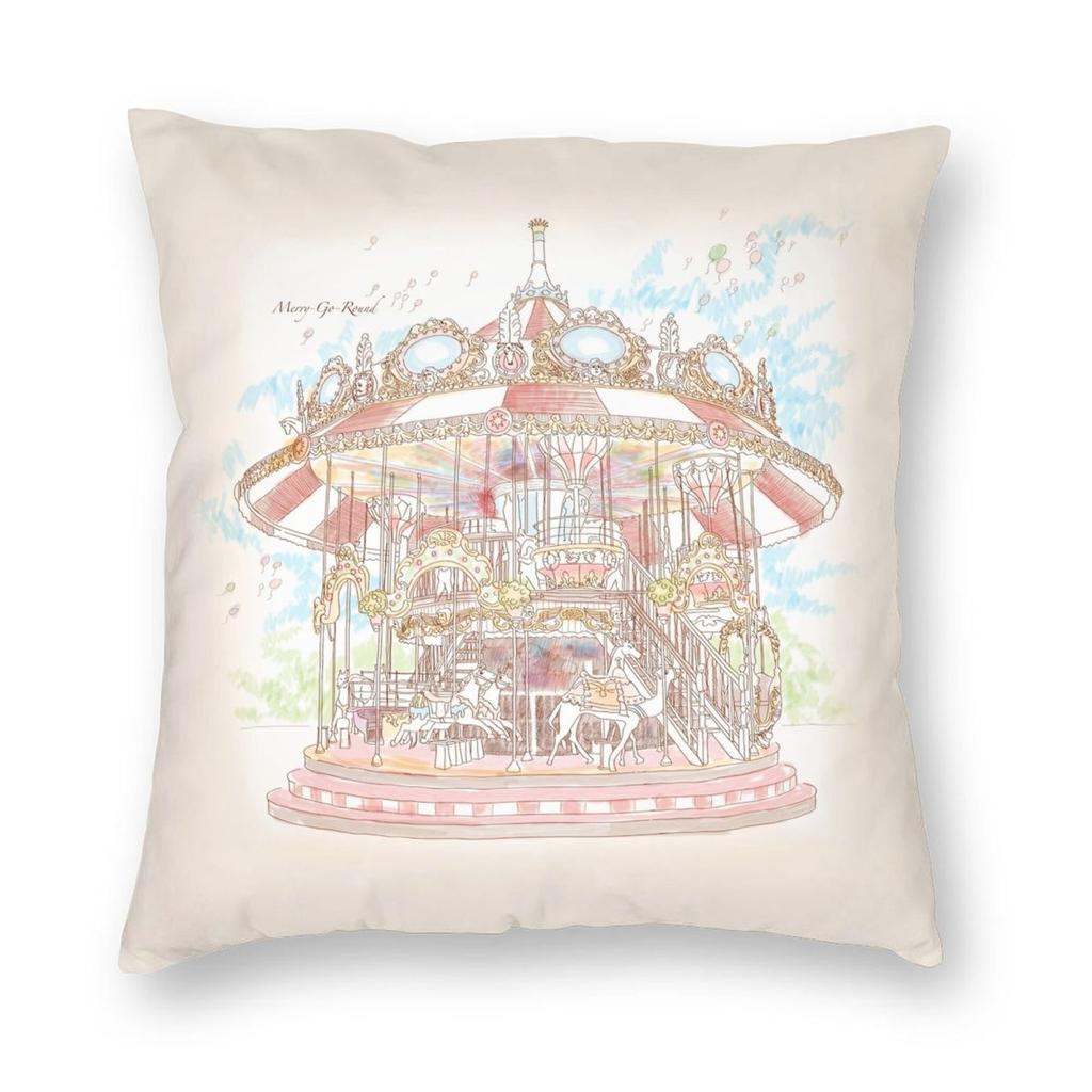 Pastel Circus Carousel Square Pillowcase Polyester Linen Velvet Printed Zip Decor Throw Pillow Case Home Cushion Cover 45x45