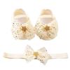 Baby Girl Net Yarn Bowknot Star Princess Shoes Toddler Soft Sole Walking Shoes Headband Set