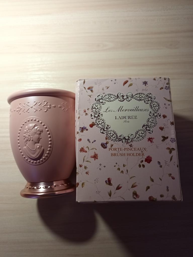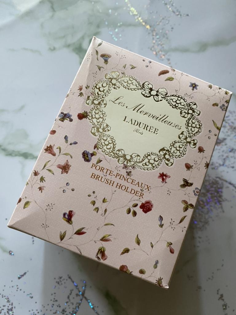 Laduree Embossment Makeup Brushes Holder - White / Pink - Luxury Beauty Cosmetic Brush Storage Case