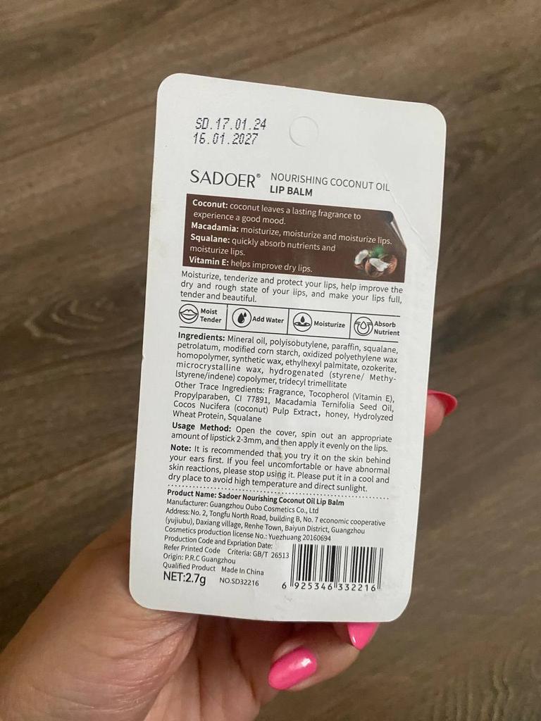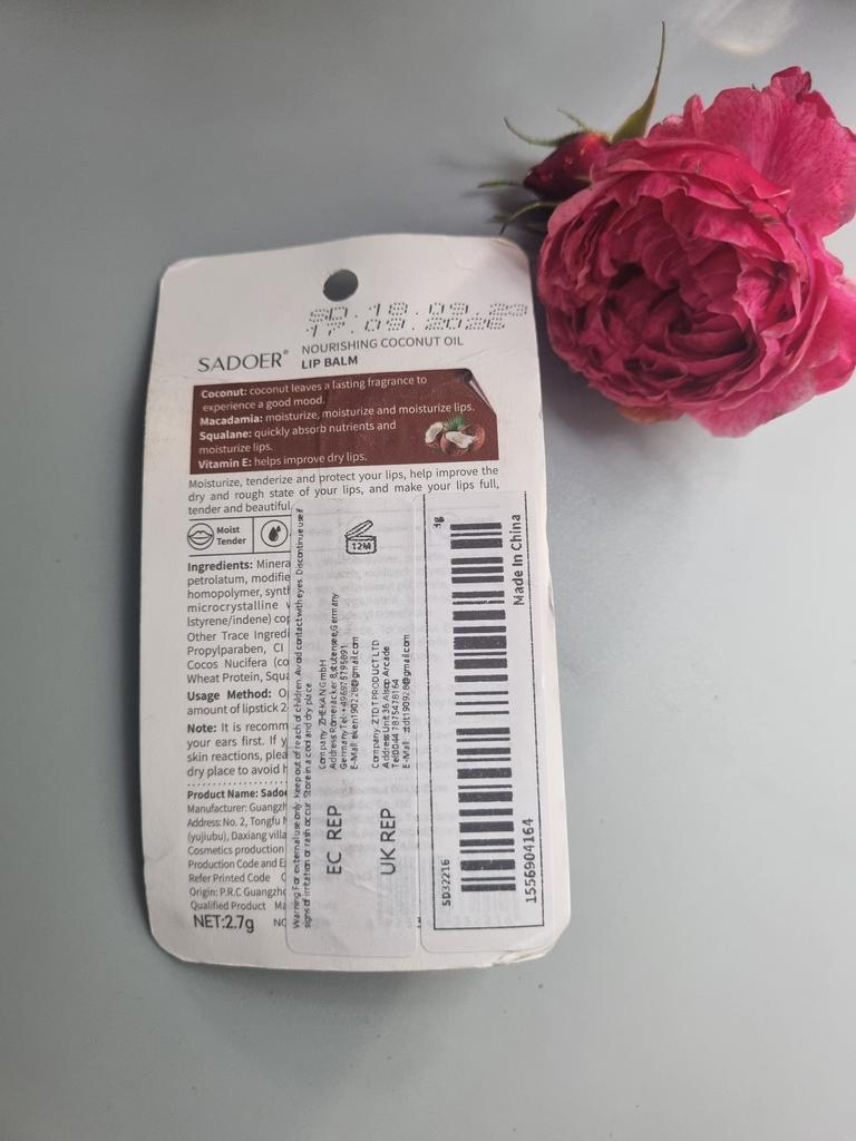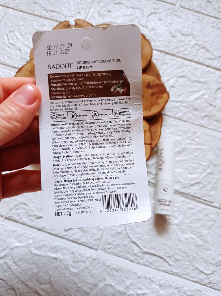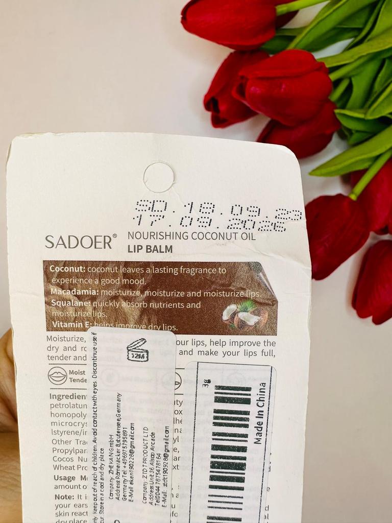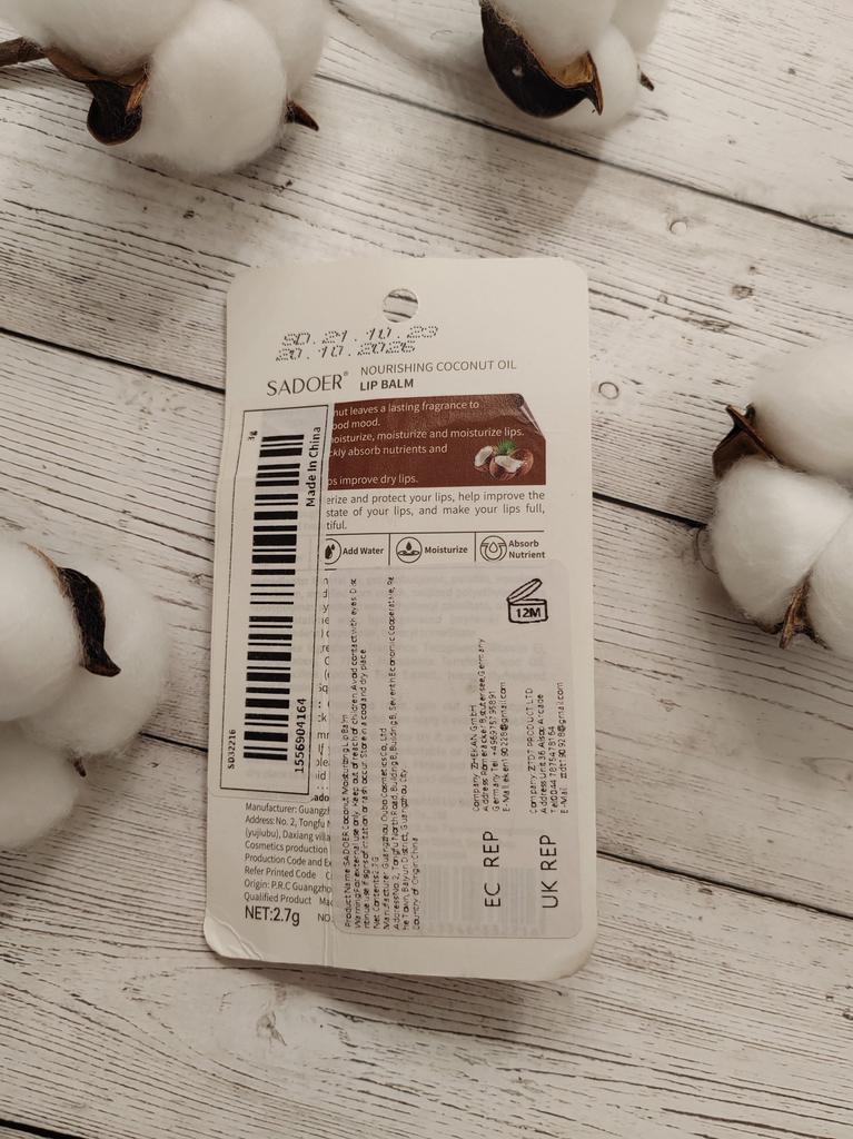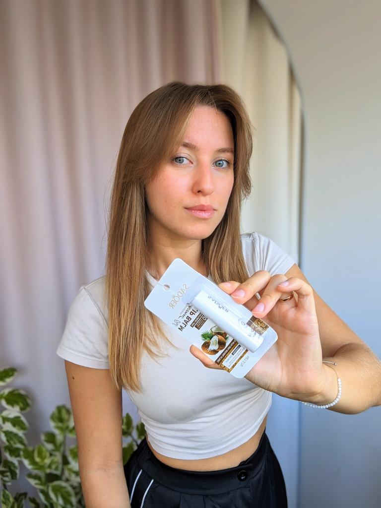 The Sadoer Coconut Oil Lip Balm arrived on time. I got permanent lip makeup and now I have to keep them moisturized all the time. This balm copes with this with a bang 🤩 Gentle in application, the texture is light and silky. Lips do not stick together, are moisturized and soft. I really liked the composition, it did not cause allergies. Girls, my recommendations ❤️