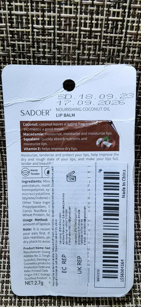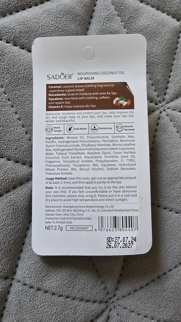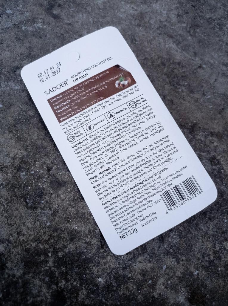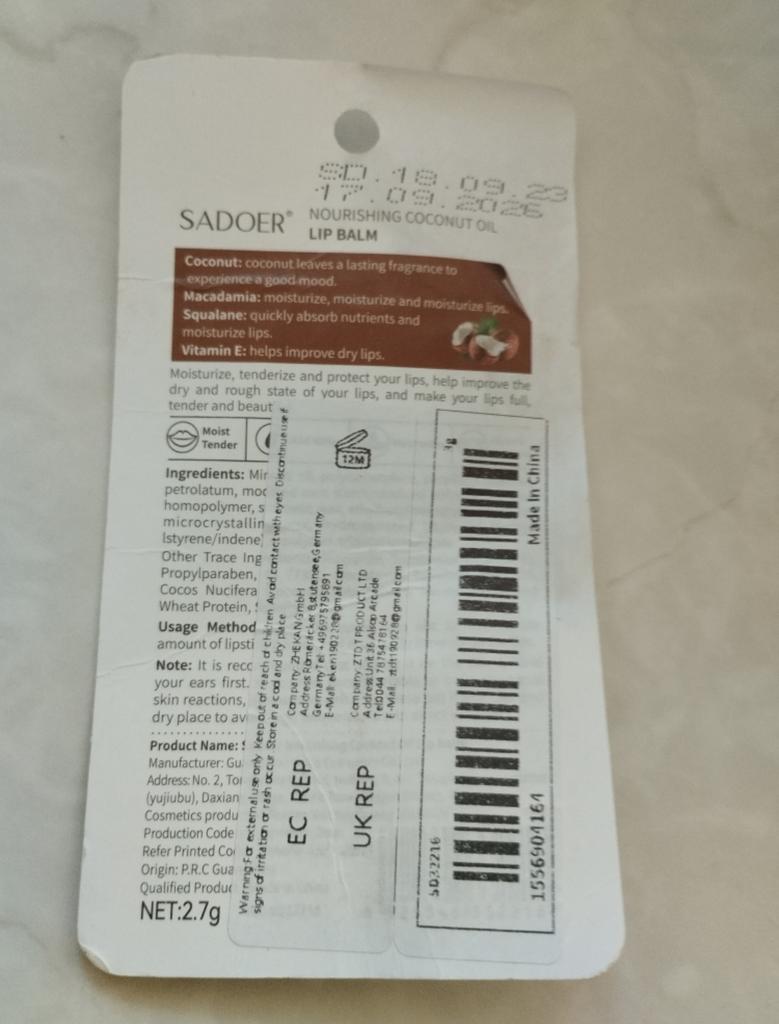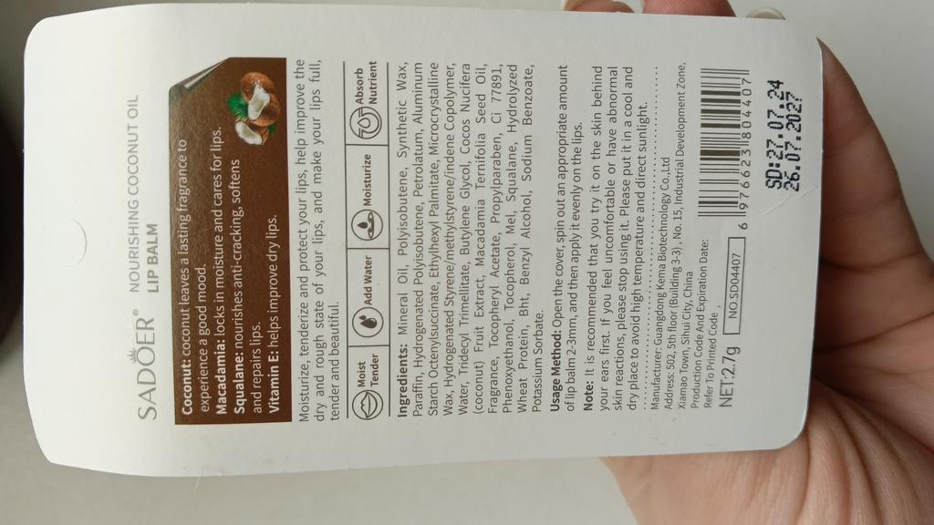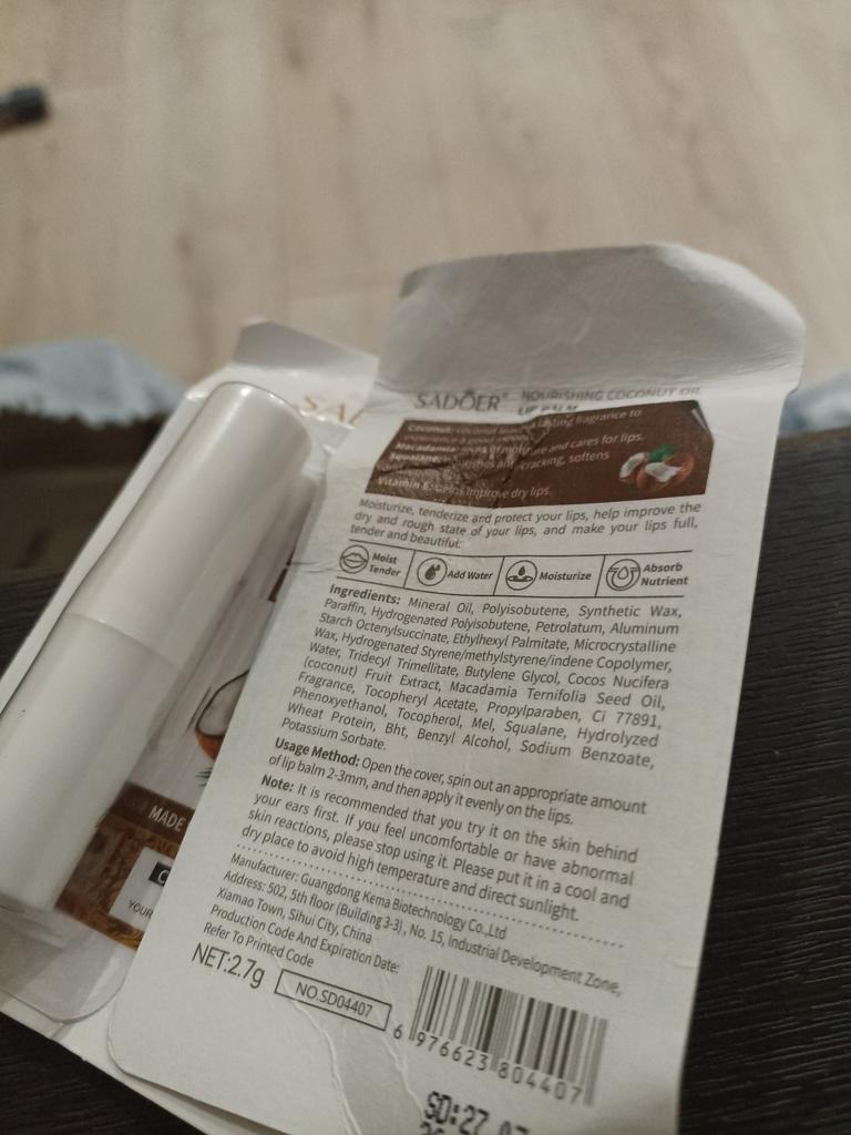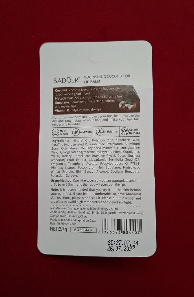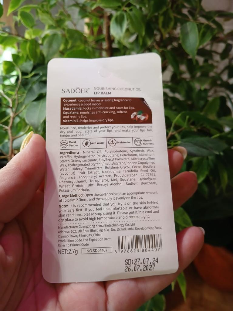 The Sadoer Coconut Oil Lip Balm arrived on time. I got permanent lip makeup and now I have to keep them moisturized all the time. This balm copes with this with a bang 🤩 Gentle in application, the texture is light and silky. Lips do not stick together, are moisturized and soft. I really liked the composition, it did not cause allergies. Girls, my recommendations ❤️