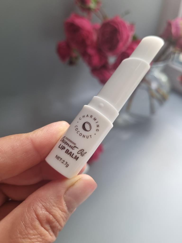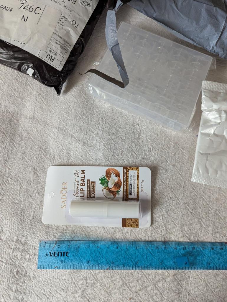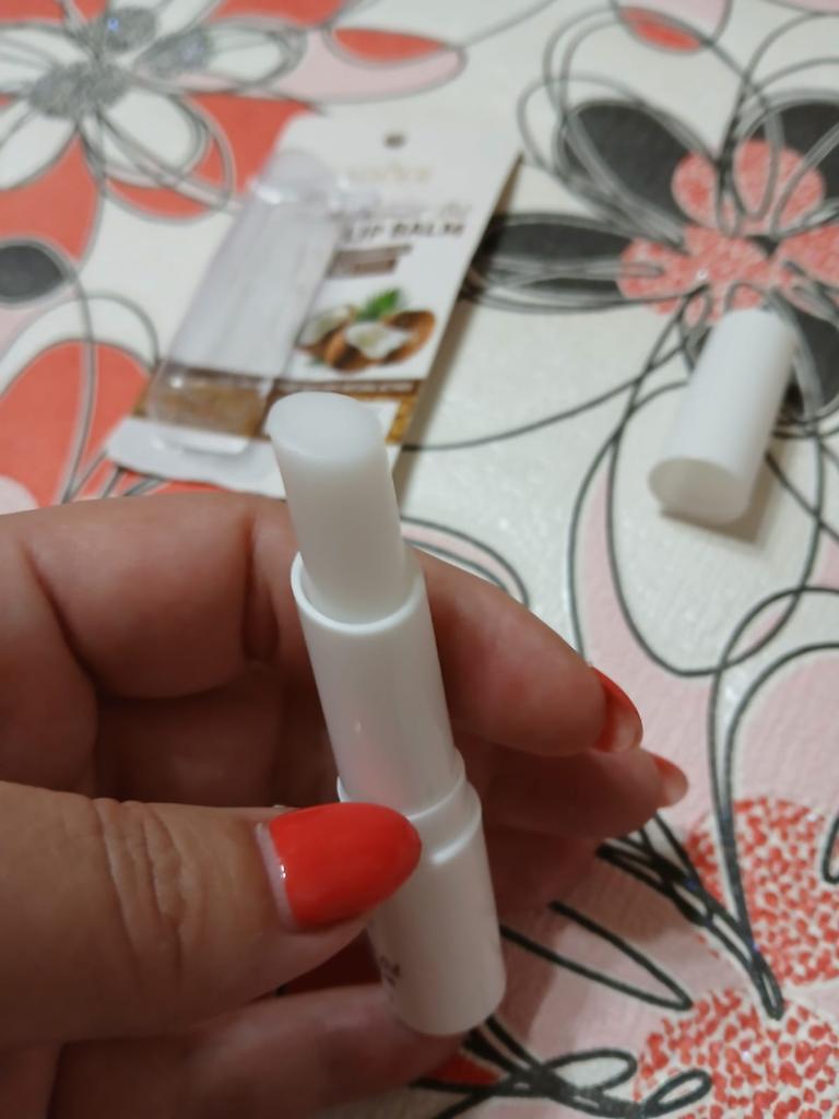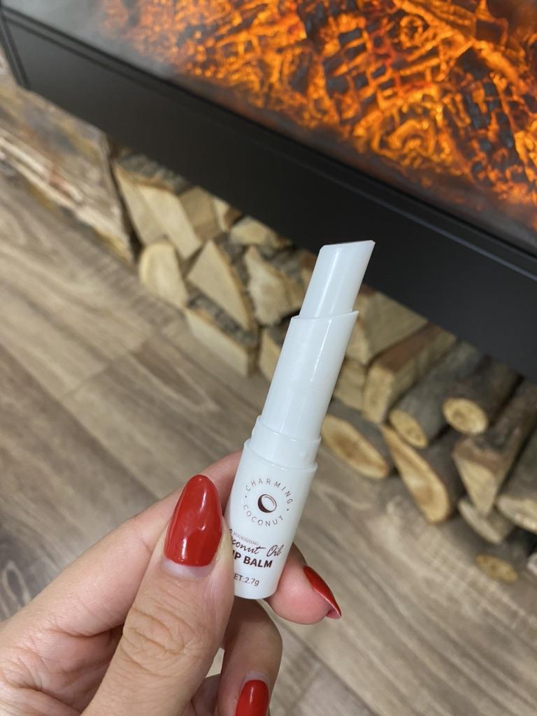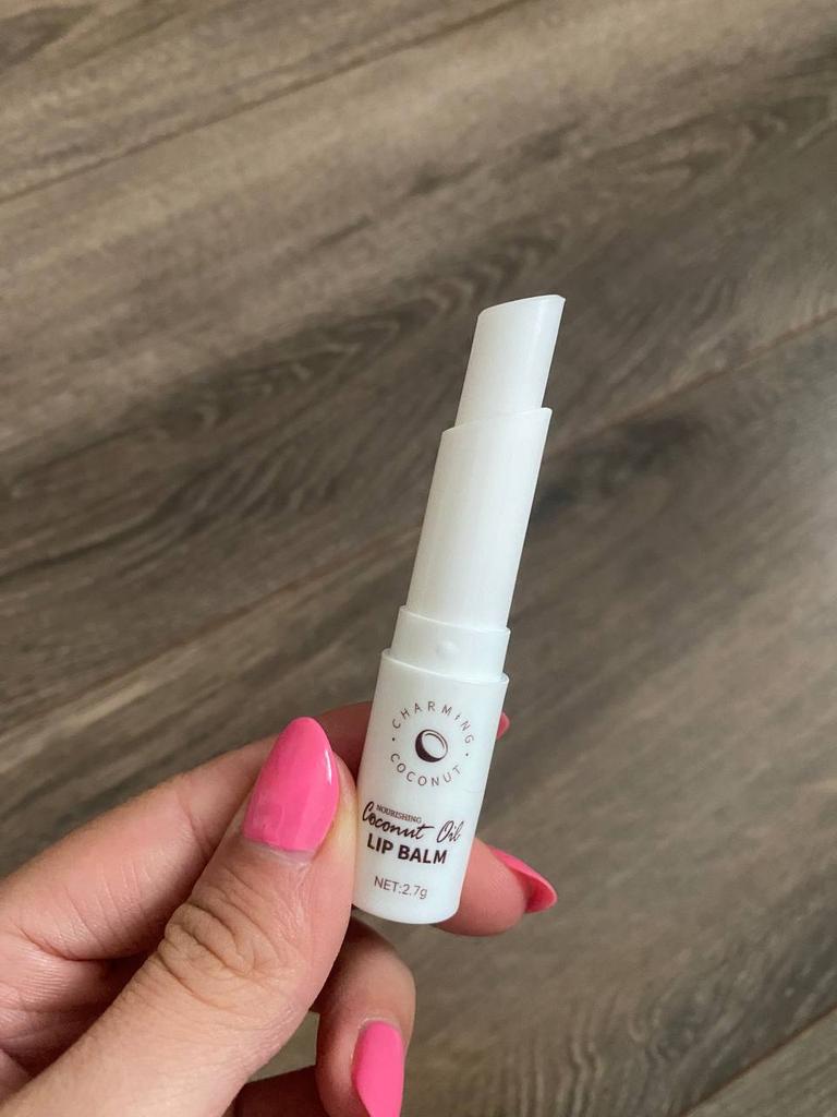 Coconut lip balm. It has a gentle, pleasant aroma of coconut. The texture is greasy. Moisturizes lips very well. Does not leave a feeling of sticky effect. I use it all the time. The seller reliably packed his goods 👌