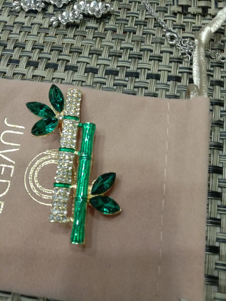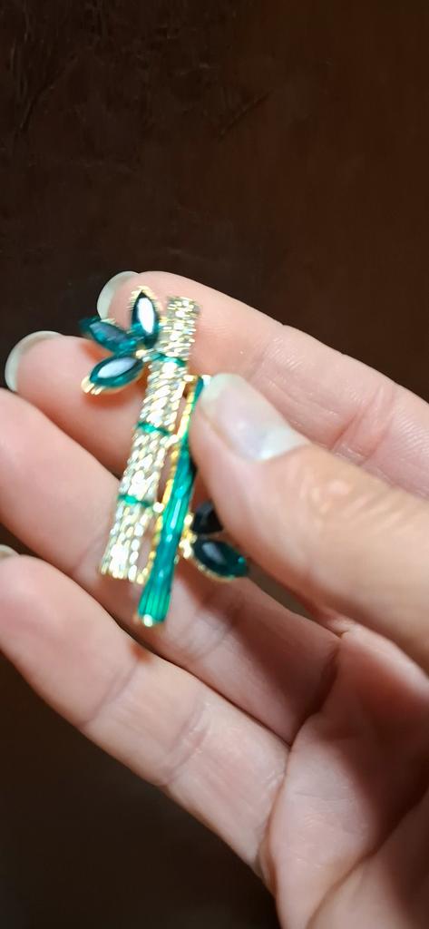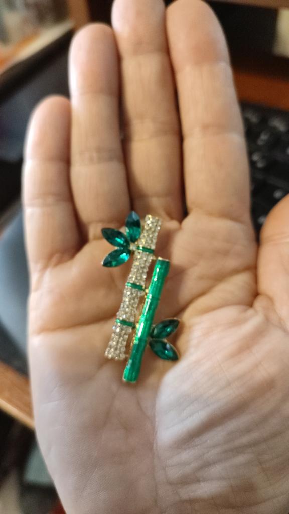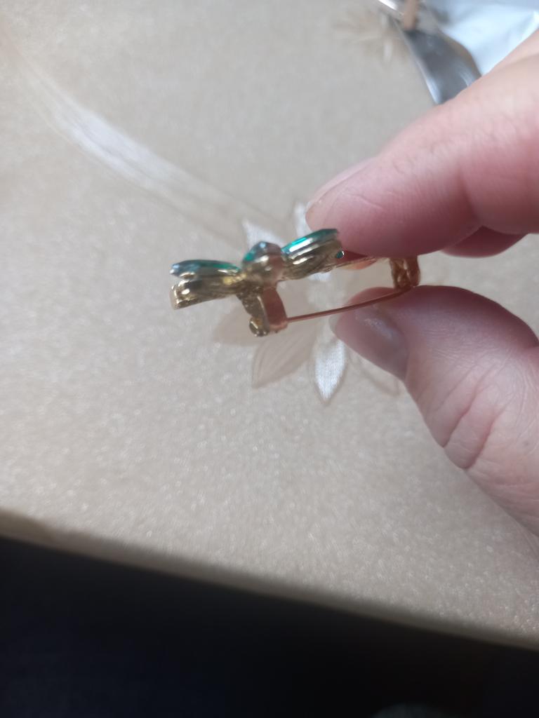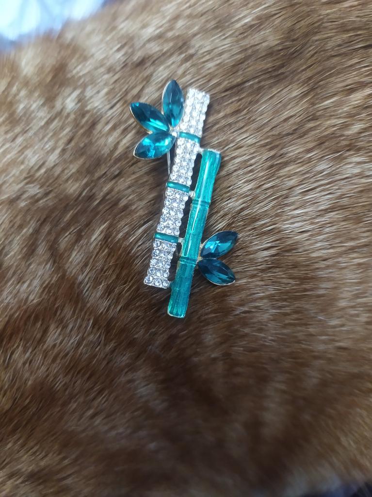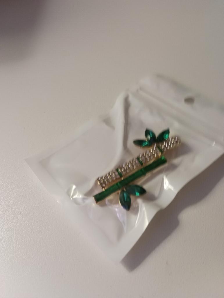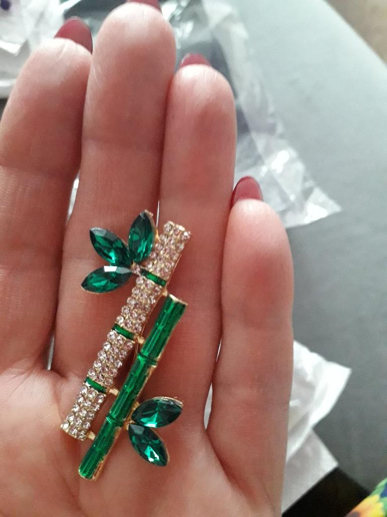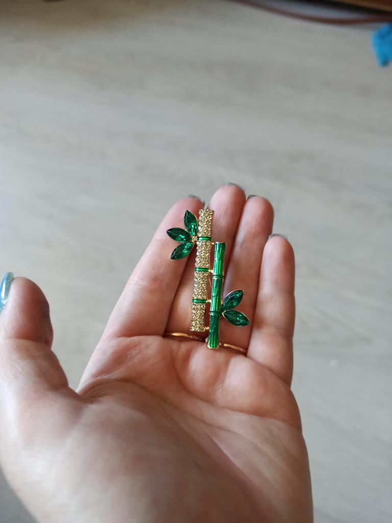 Very cool delicate brooch. Unfortunately, the camera shows a turquoise color, but in reality it is a rich green. Arrived quickly, made with high quality. I recommend