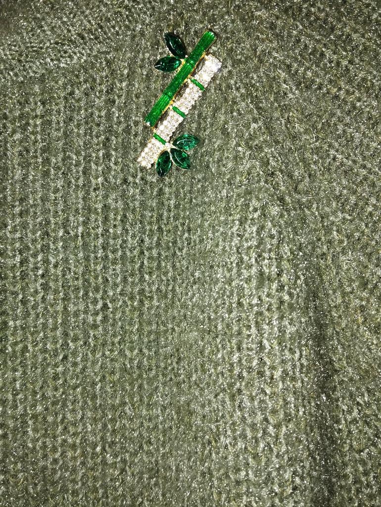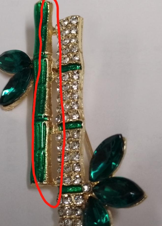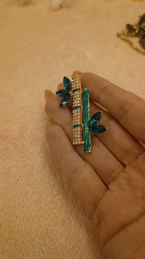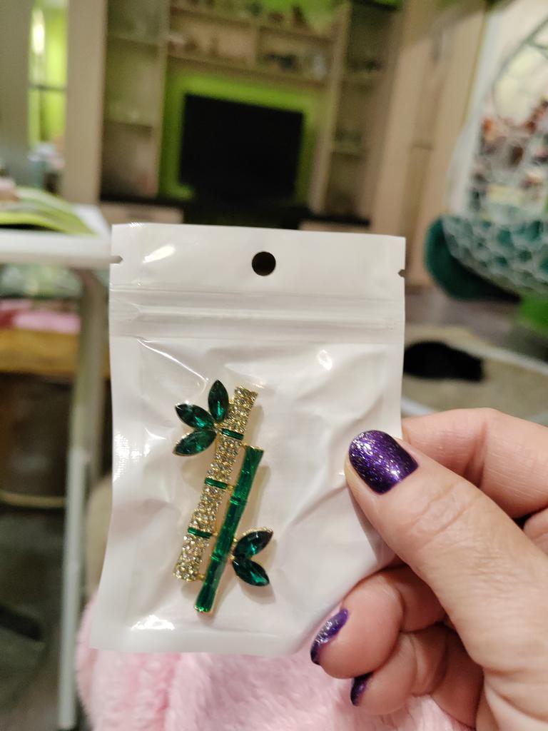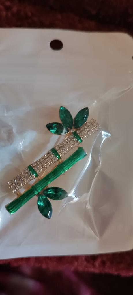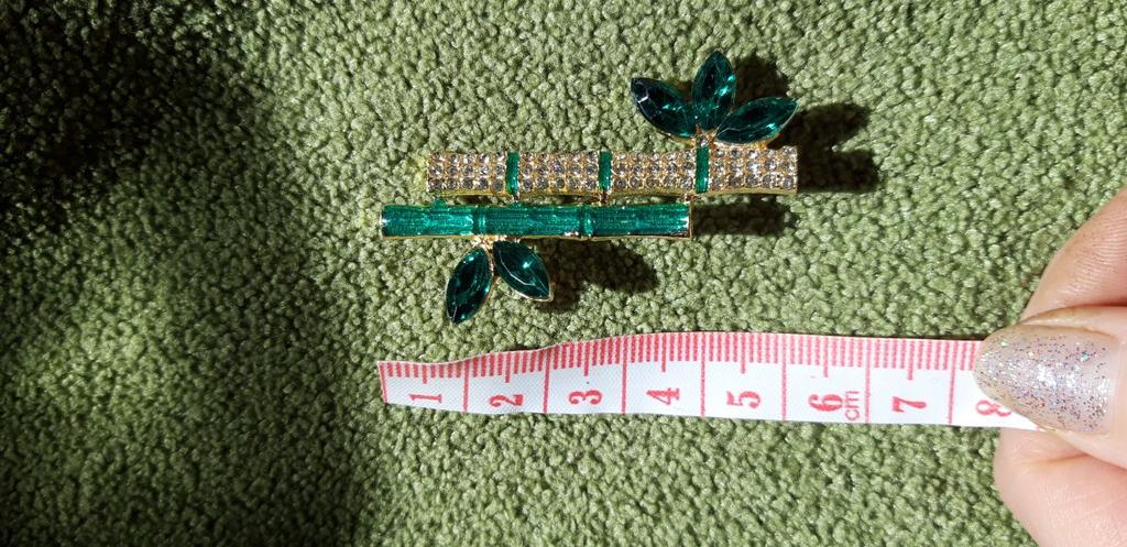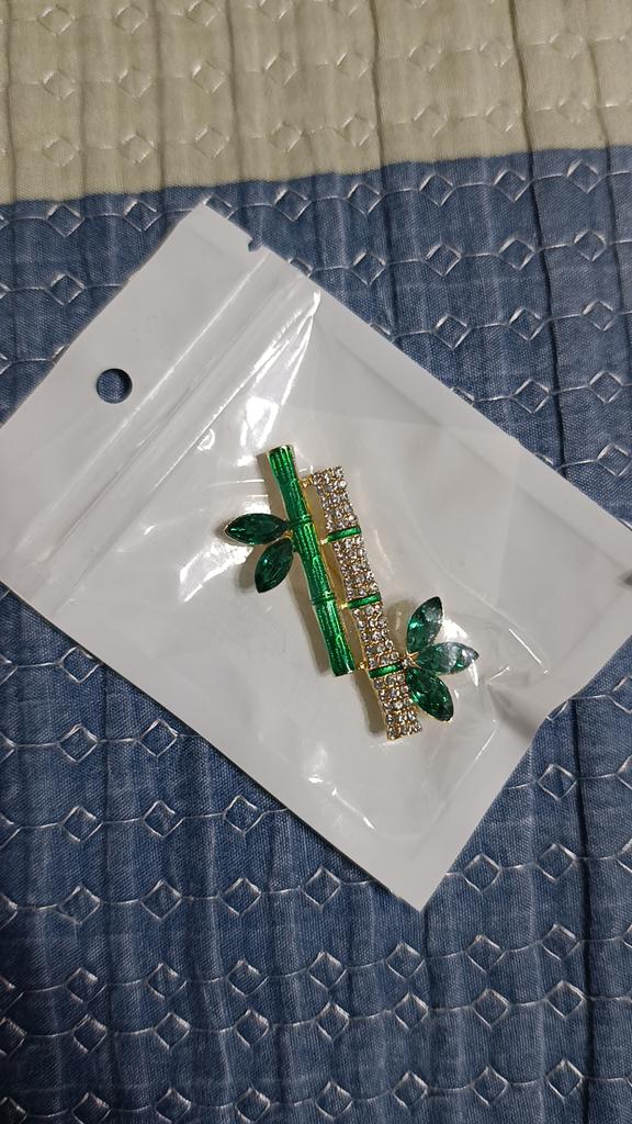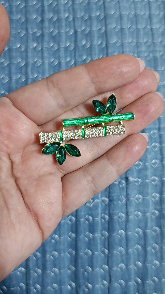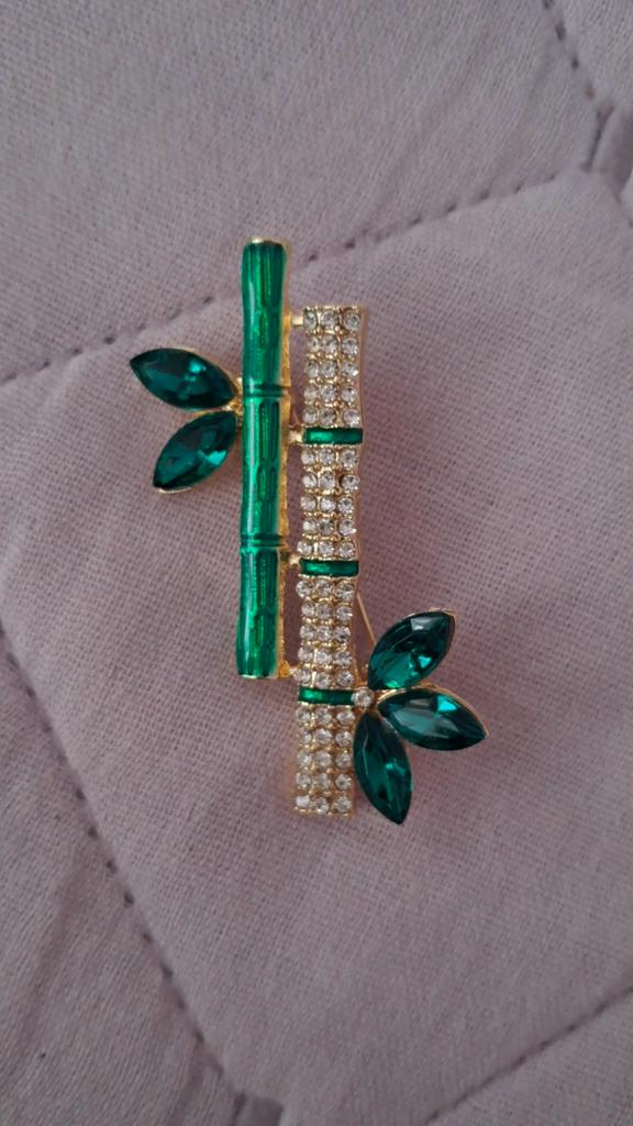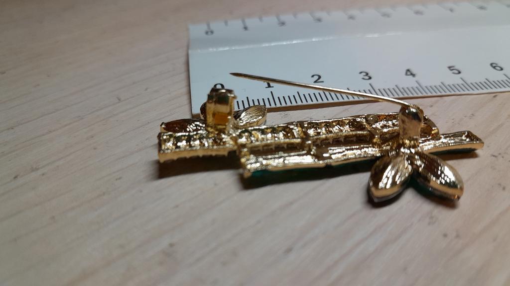 Very cool delicate brooch. Unfortunately, the camera shows a turquoise color, but in reality it is a rich green. Arrived quickly, made with high quality. I recommend